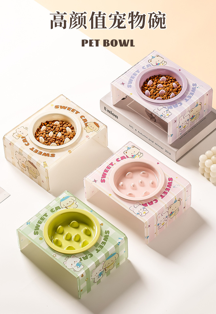 애완견 슬로우 푸드 보울 안티 질식 슬로우 푸드 세라믹 개 그릇 개 식품 분지 안티 전복 키 큰 고양이 그릇 고양이 먹이 분지스토어 가기