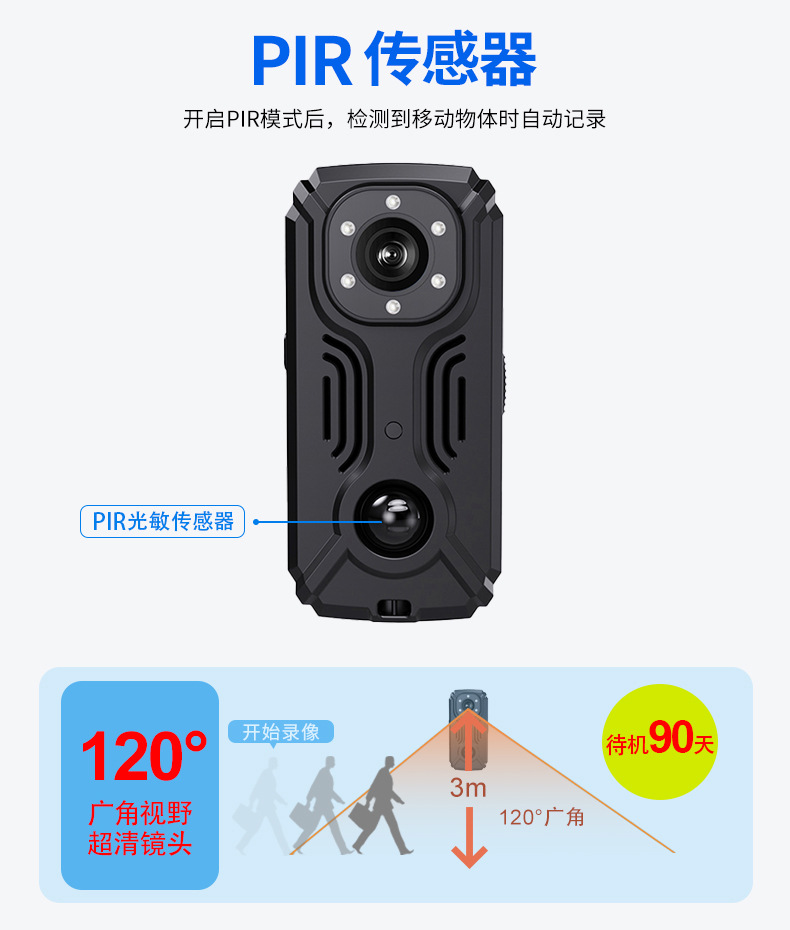 高清摄像机广角红外相机运动摄影机记录仪PIR摄像头1080P WIFI P2P 手机热点连接骑行摄像机
