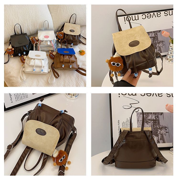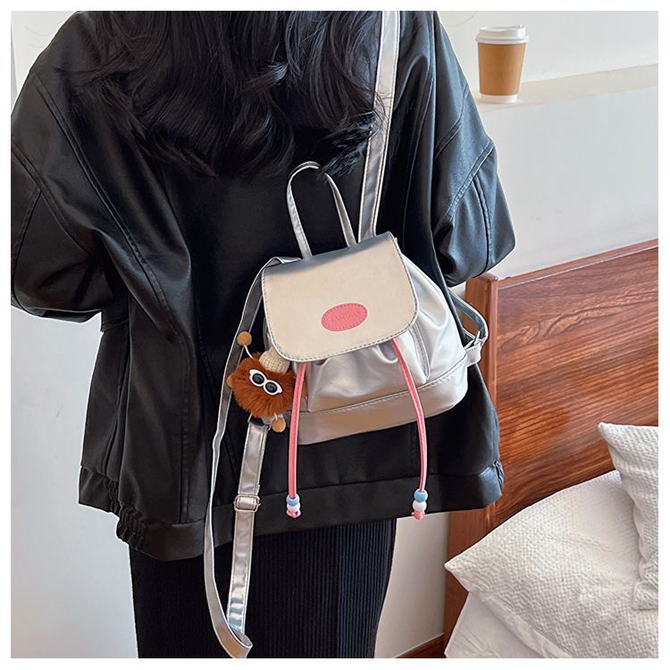 2024 봄과 여름 새로운 패션 간단한 휴대용 사첼 세련된 소녀 어깨 가방 레트로 바느질 배낭스토어 가기