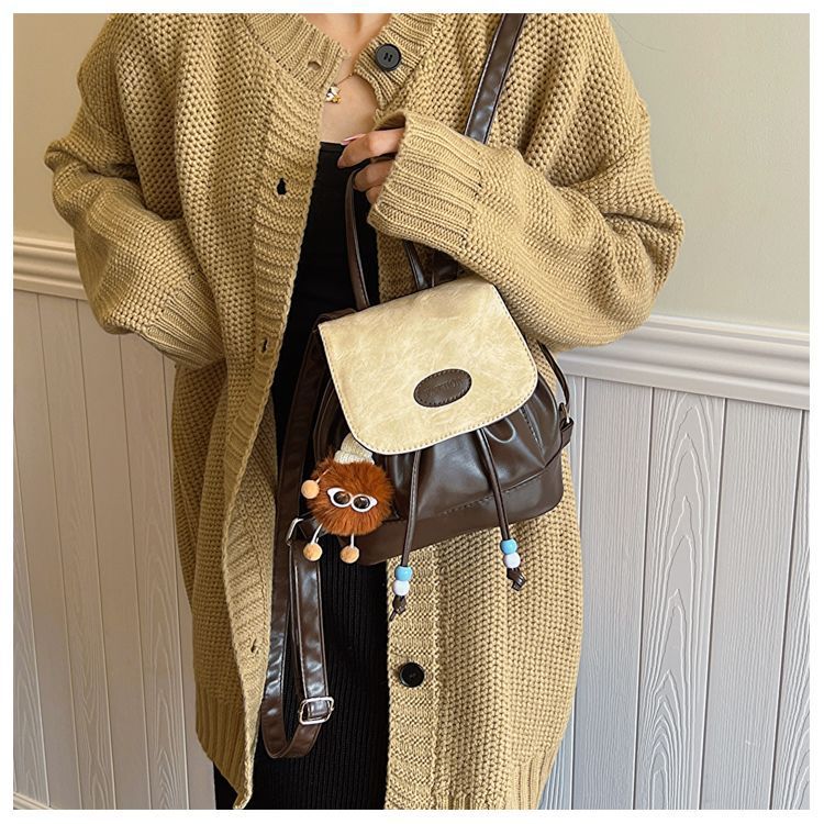 2024 봄과 여름 새로운 패션 간단한 휴대용 사첼 세련된 소녀 어깨 가방 레트로 바느질 배낭