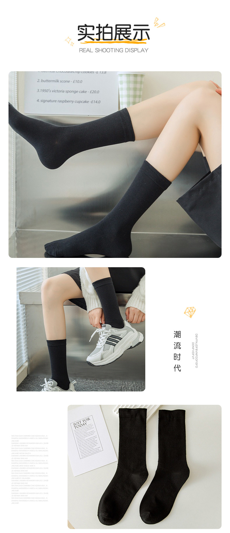 2025 가을 여성용 면 양말, 샤오홍슈 동일 스타일, 단색 중목 양말, 다용도 편안한 롱 양말, 통기성 좋은 스타킹