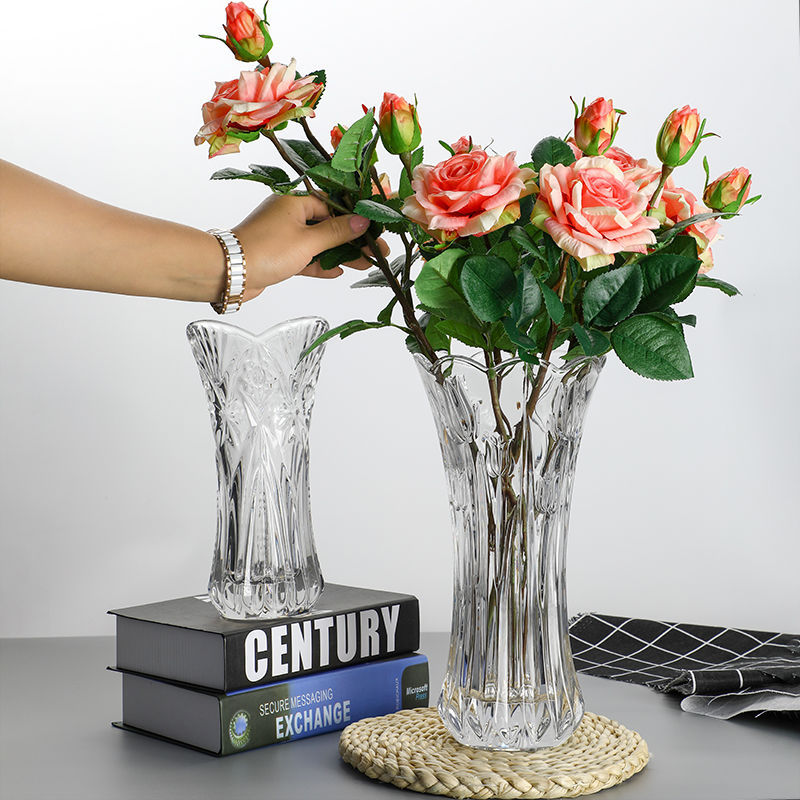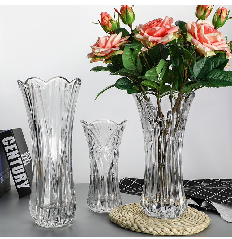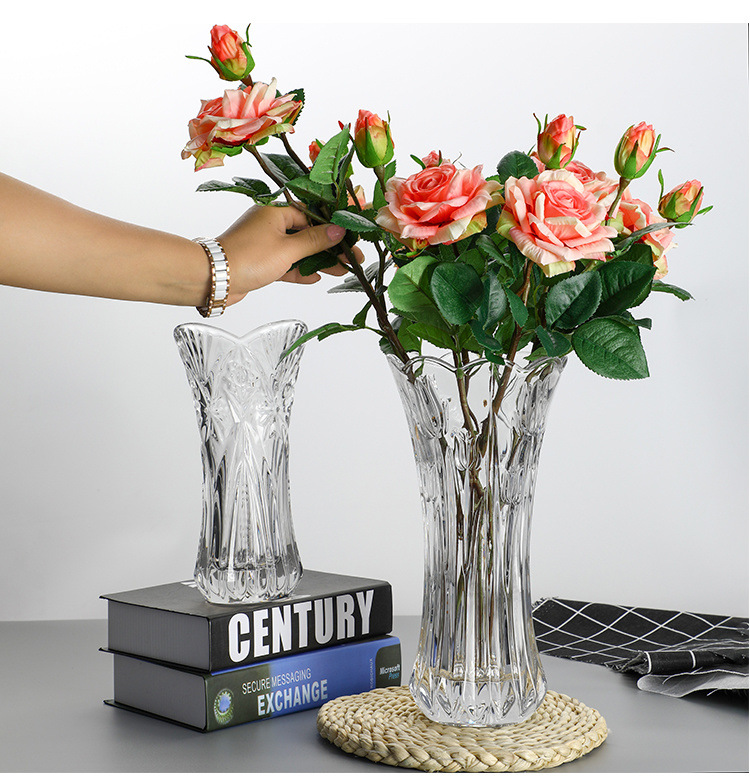 간단한 대형 유리 꽃병 투명 꽃꽂이 거실 장식품 수경 풍부한 대나무 꽃병 백합 말린 꽃 데스크탑 공장