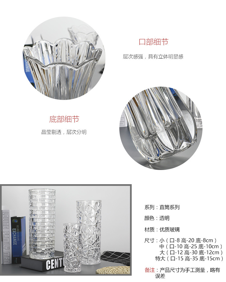 간단한 대형 유리 꽃병 투명 꽃꽂이 거실 장식품 수경 풍부한 대나무 꽃병 백합 말린 꽃 데스크탑 공장스토어 가기