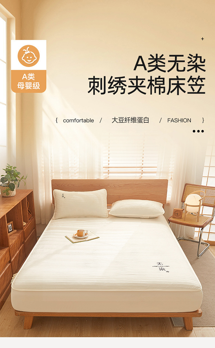 대외 무역 무염색 퀼트 침대 시트 유형 A 산모 및 유아용 자수 세척 면 대두 섬유 먼지 방지 및 미끄럼 방지 기능스토어 가기