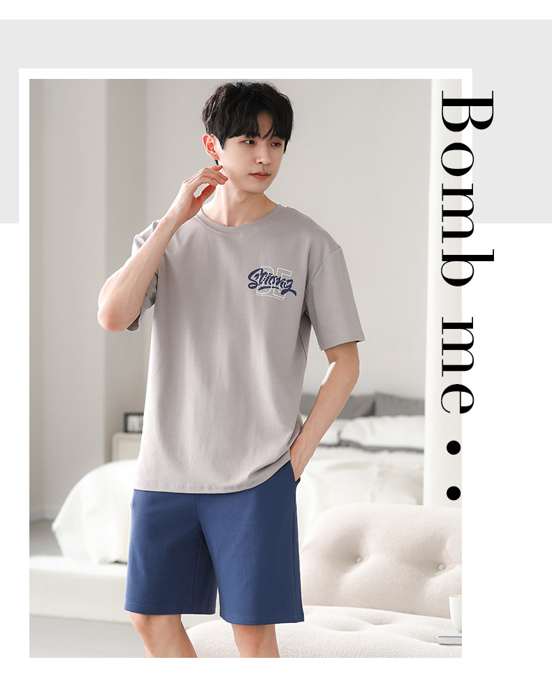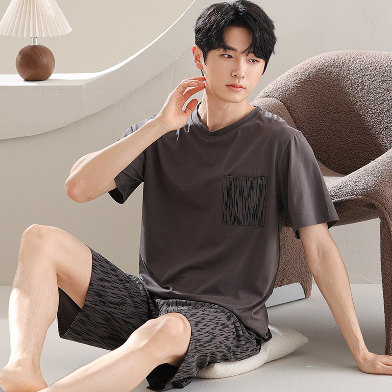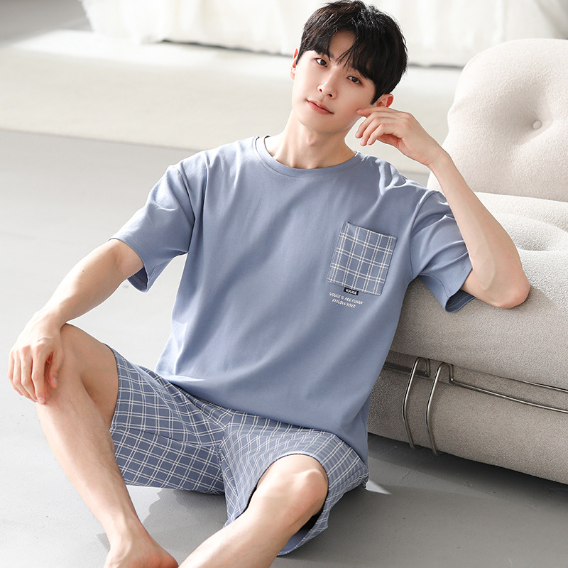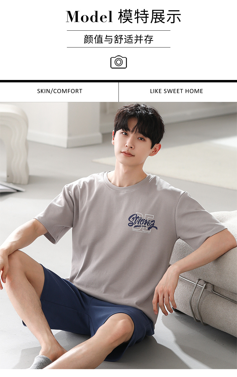 잠옷 남자 모달 반팔 반바지 파자마 남자 얇은 남자 겨울 하이 퀄리티 반팔 세트 유행 홈 의류스토어 가기