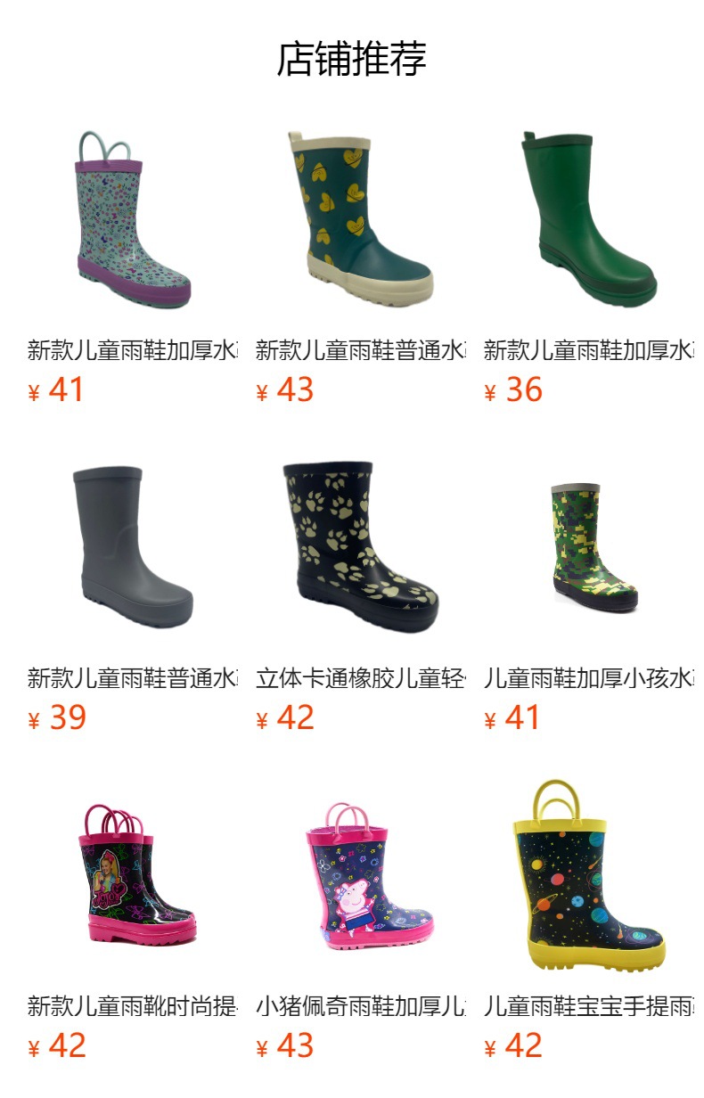새로운 어린이 장화, 일반 물 신발, 높은 방수 및 미끄럼 방지 만화 고무 장화, 유럽 및 미국 공장 도매로 수출스토어 가기