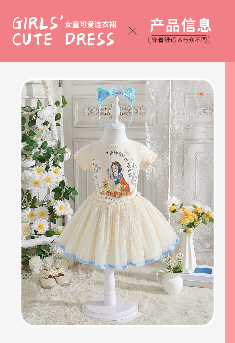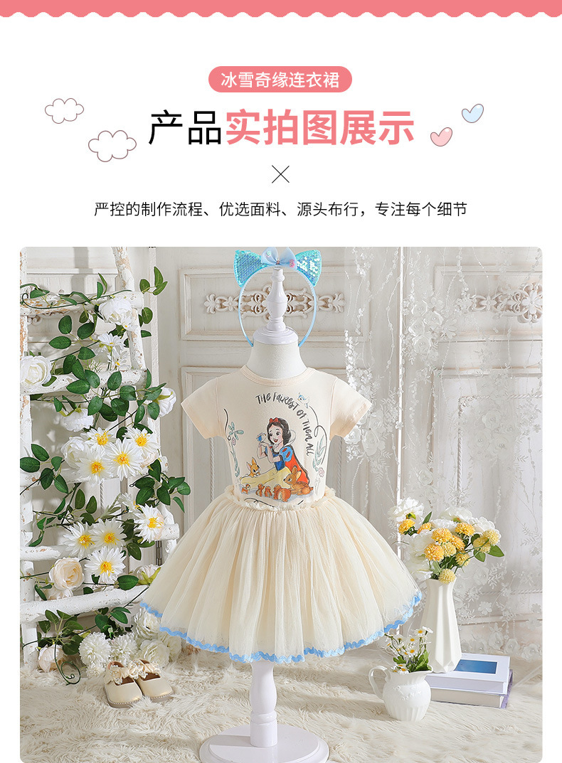 귀여운 아기 소녀 여름 반팔 백설 공주 원피스 면 큰 스커트 퍼프 스커트 어린이 한 살짜리 원피스 패션스토어 가기
