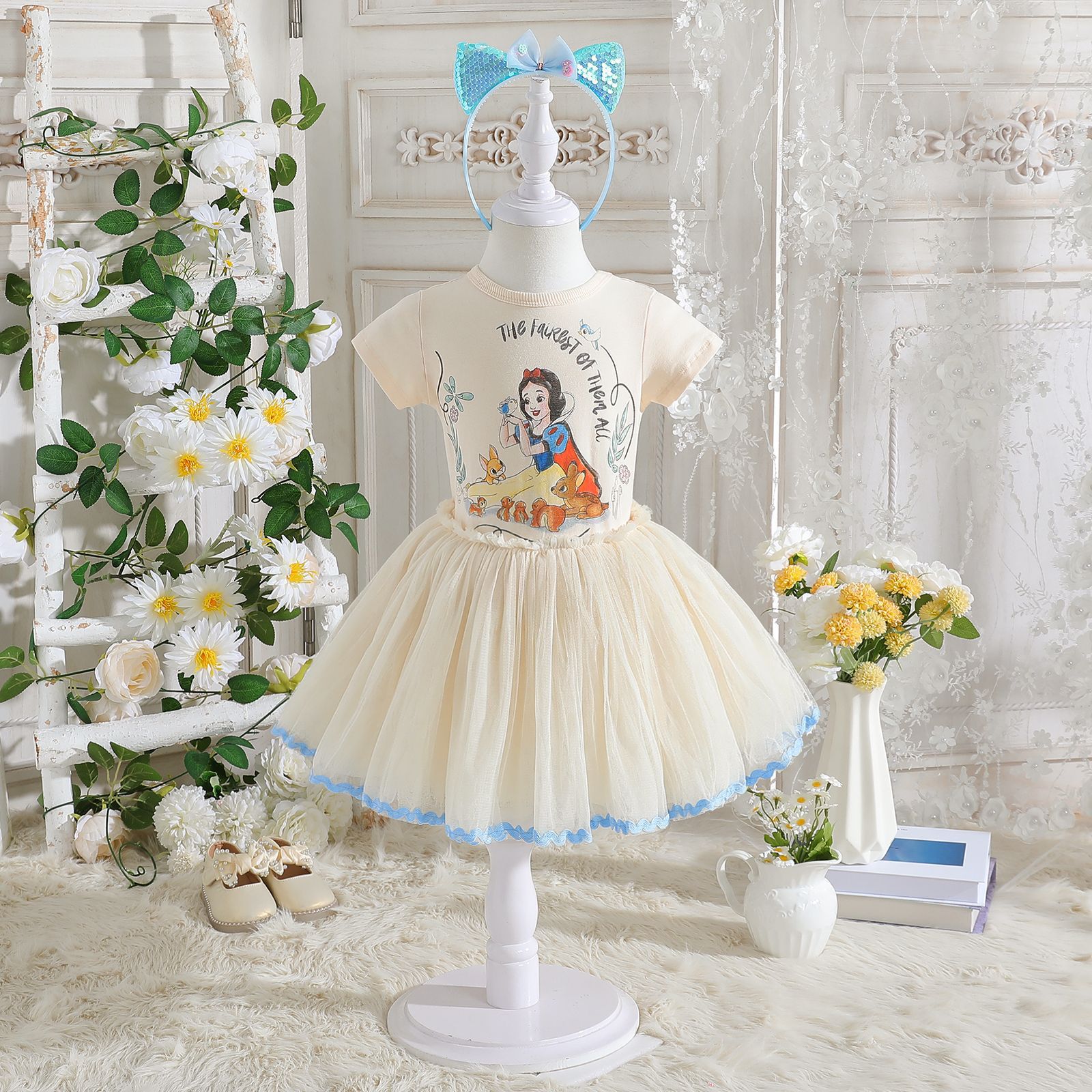 귀여운 아기 소녀 여름 반팔 백설 공주 원피스 면 큰 스커트 퍼프 스커트 어린이 한 살짜리 원피스 패션