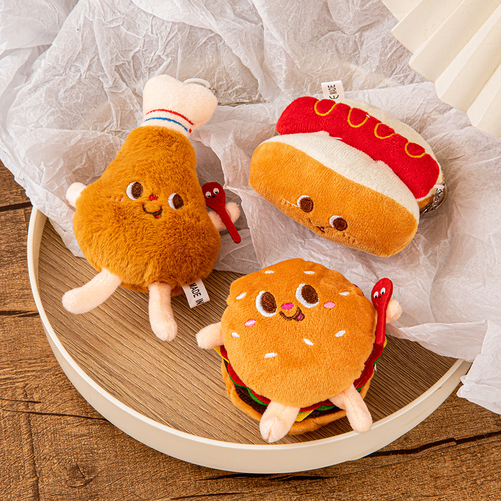 귀여운 크리 에이 티브 감자 튀김 버거 인형 펜던트 배낭 커플 플러시 펜던트 키 체인 가방 펜던트 도매스토어 가기