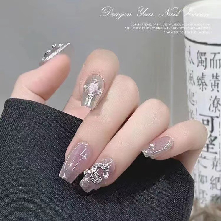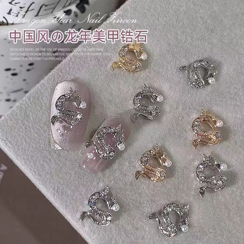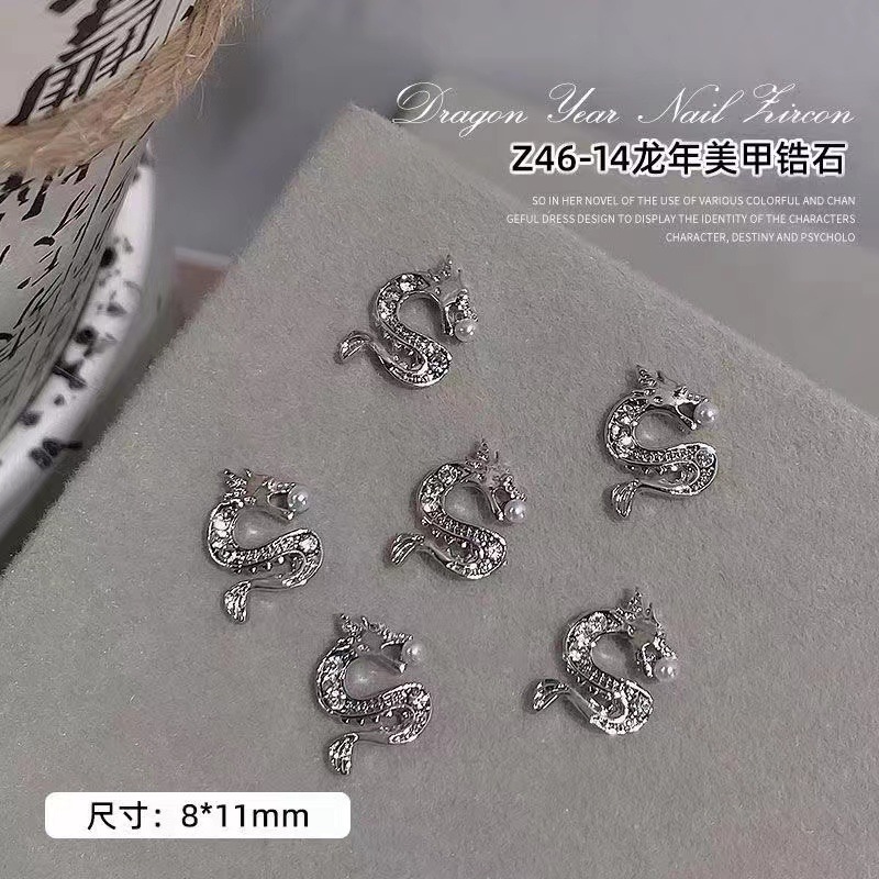 2024 드래곤 년 새 네일 아트 쥬얼리 조디악 합금 다이아몬드 네일 장식 중국 스타일 3 차원 금도금 실버 지르콘