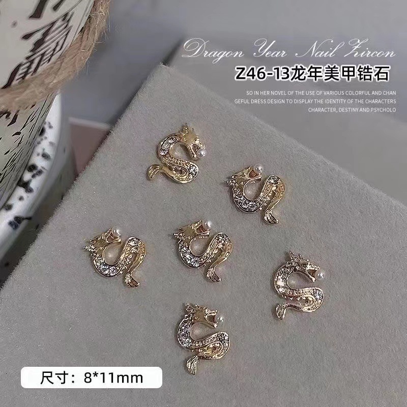 2024 드래곤 년 새 네일 아트 쥬얼리 조디악 합금 다이아몬드 네일 장식 중국 스타일 3 차원 금도금 실버 지르콘스토어 가기