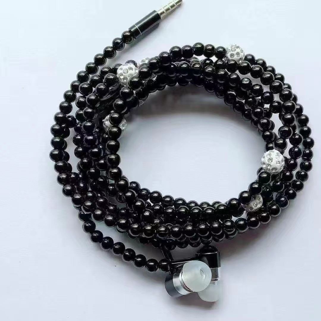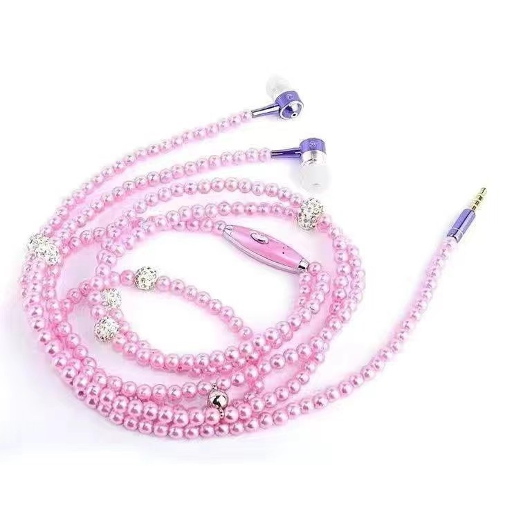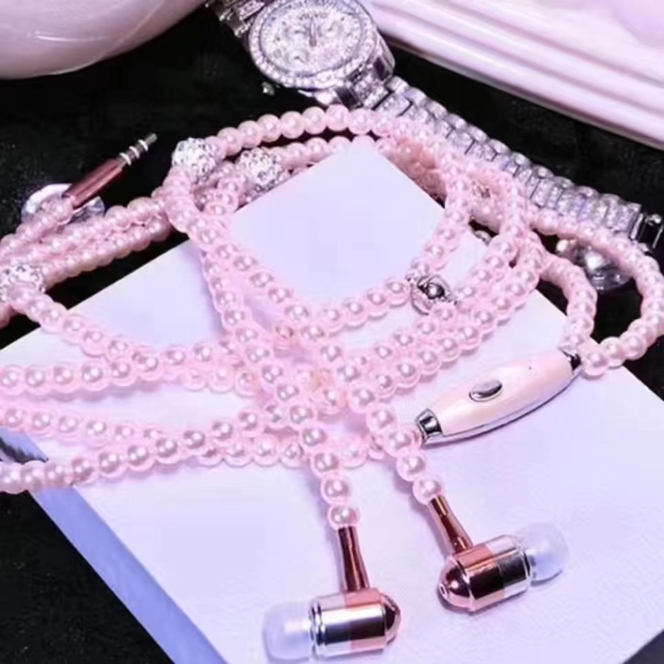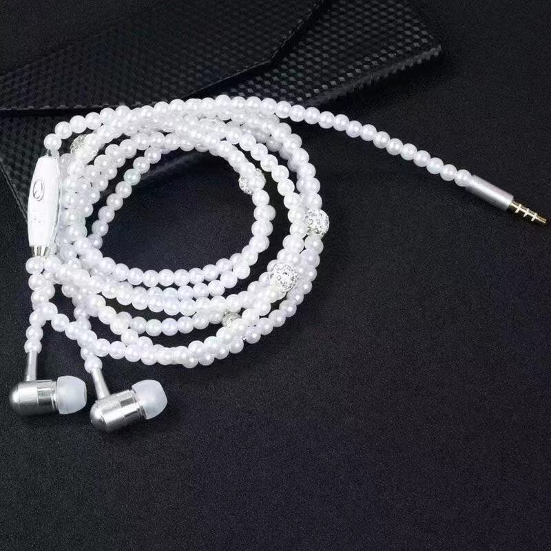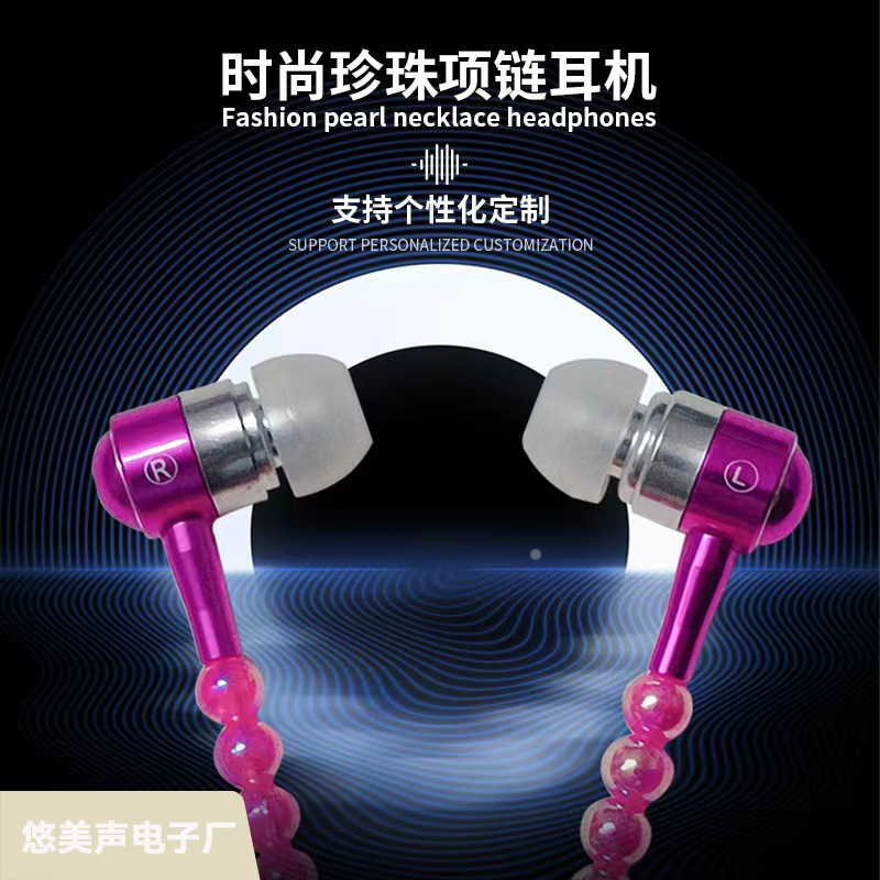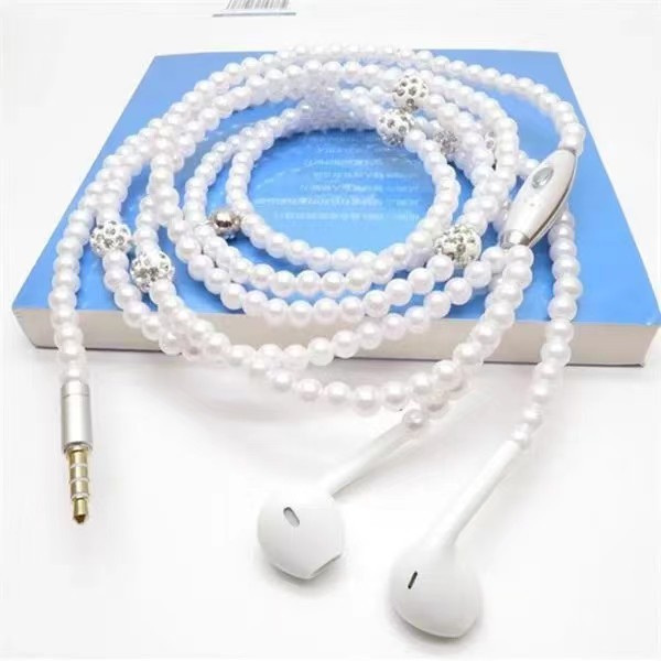 소스 공장 직접 진주 목걸이 헤드폰 라이브 헤드폰 금속 헤드폰 무거운 바닥 사운드 밴드 와이어 제어 전화 헤드폰
