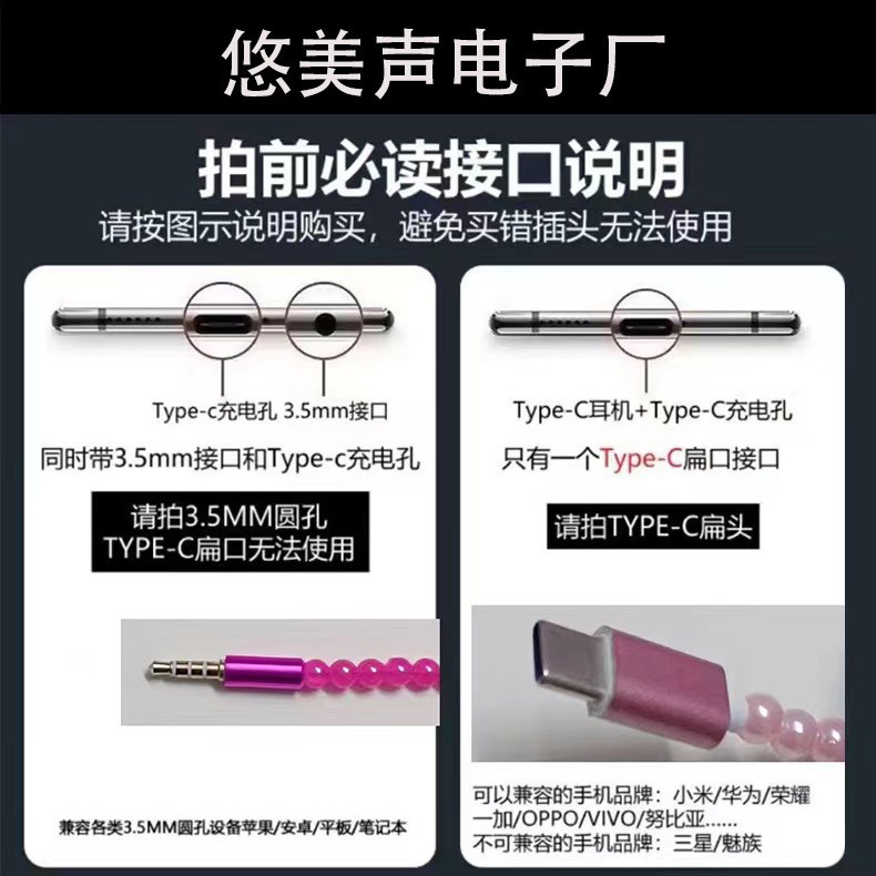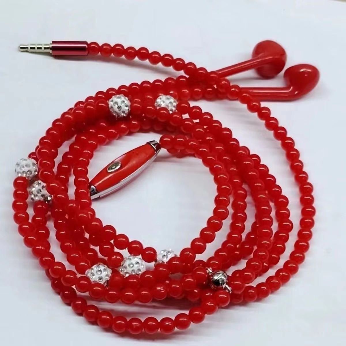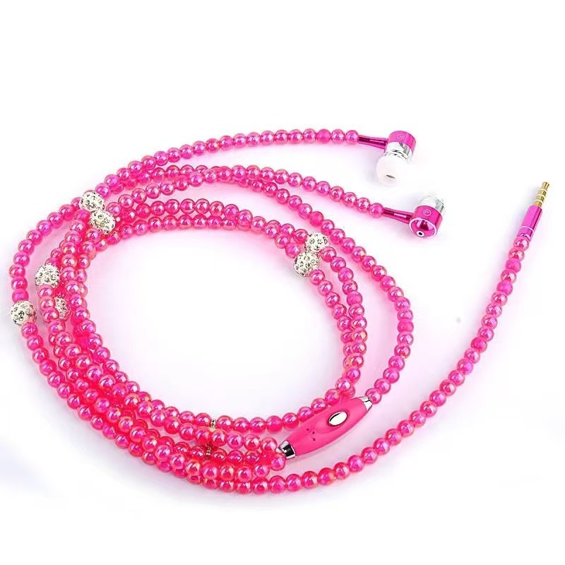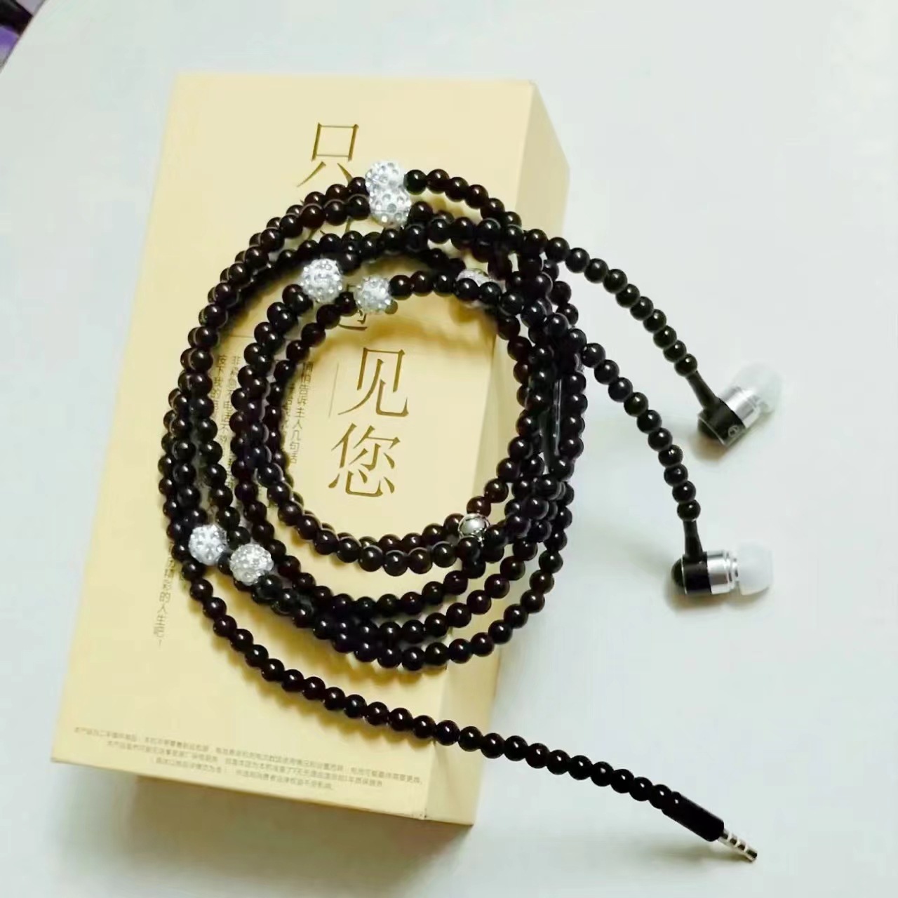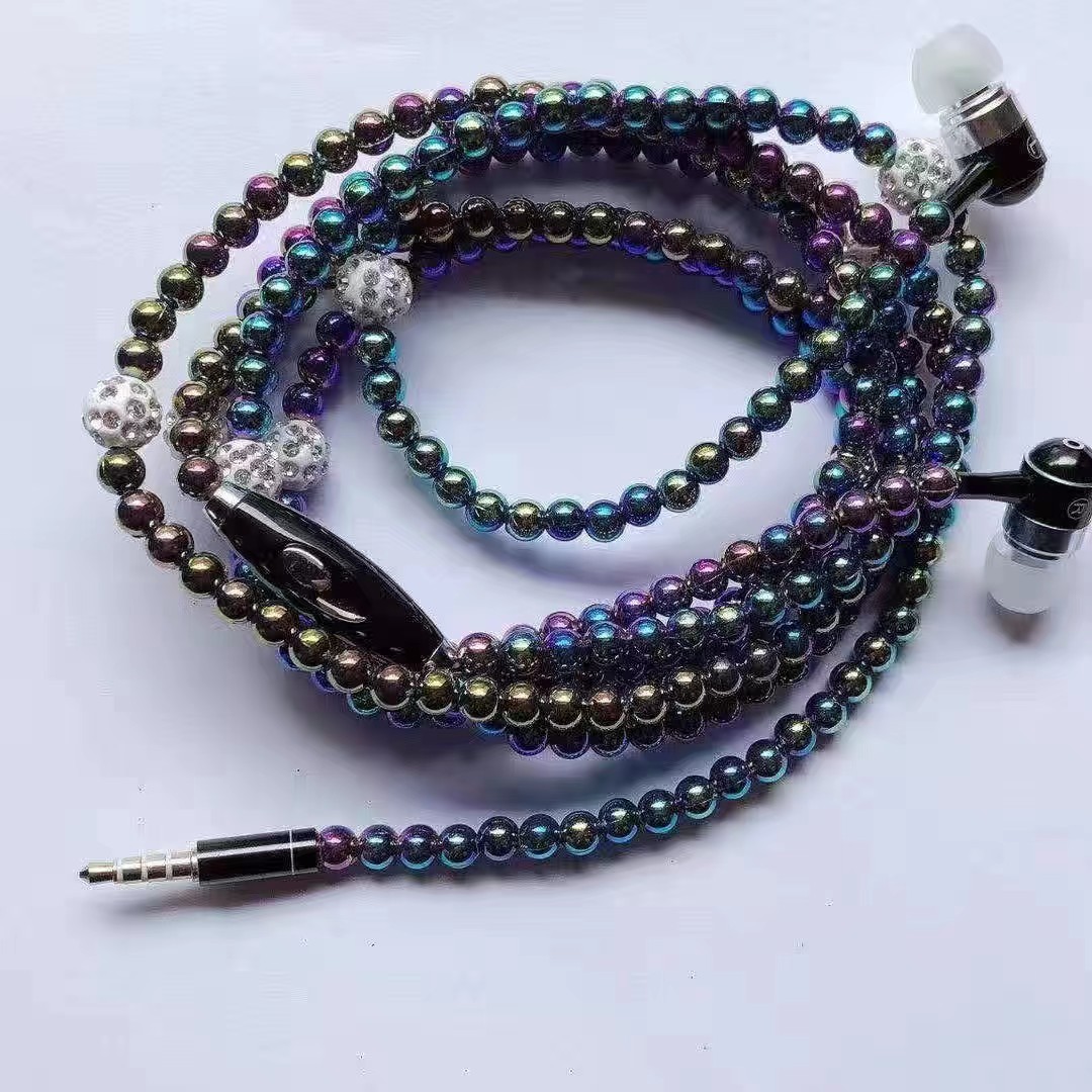 소스 공장 직접 진주 목걸이 헤드폰 라이브 헤드폰 금속 헤드폰 무거운 바닥 사운드 밴드 와이어 제어 전화 헤드폰