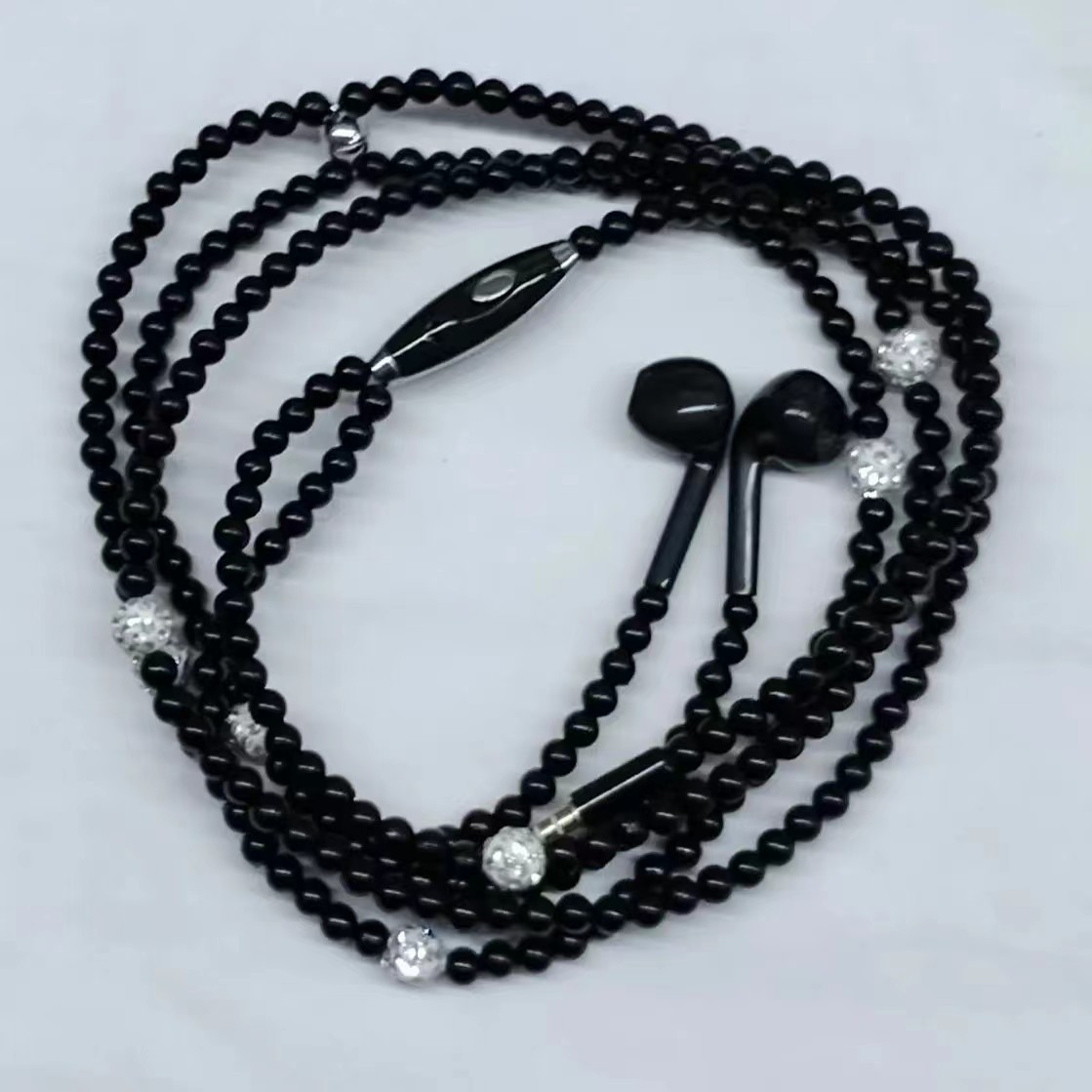 소스 공장 직접 진주 목걸이 헤드폰 라이브 헤드폰 금속 헤드폰 무거운 바닥 사운드 밴드 와이어 제어 전화 헤드폰스토어 가기