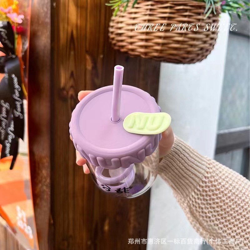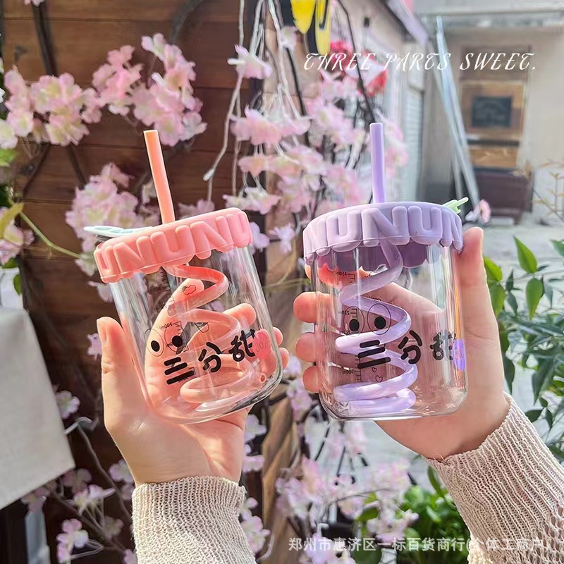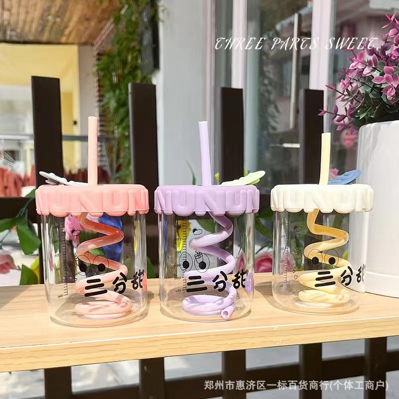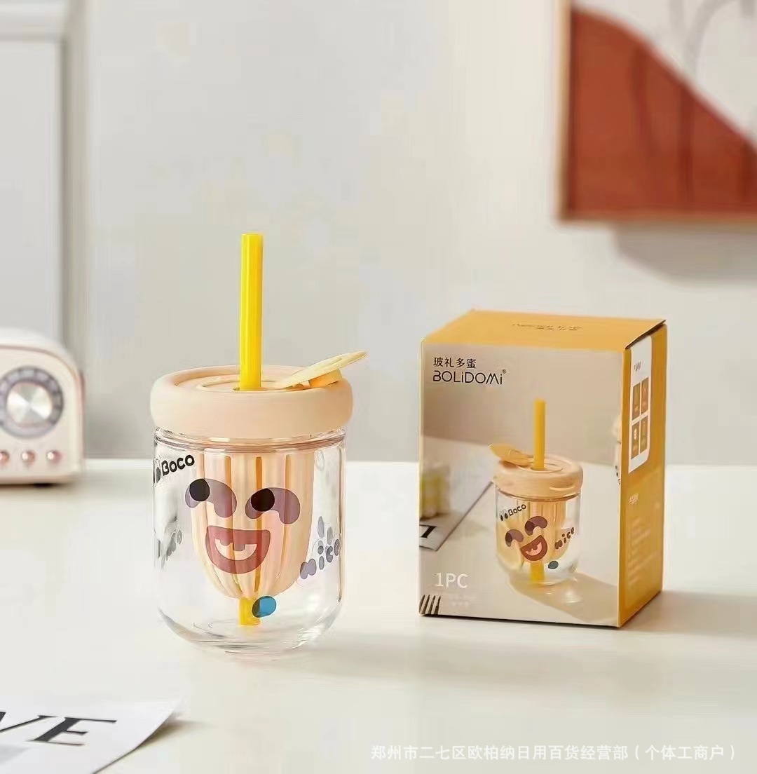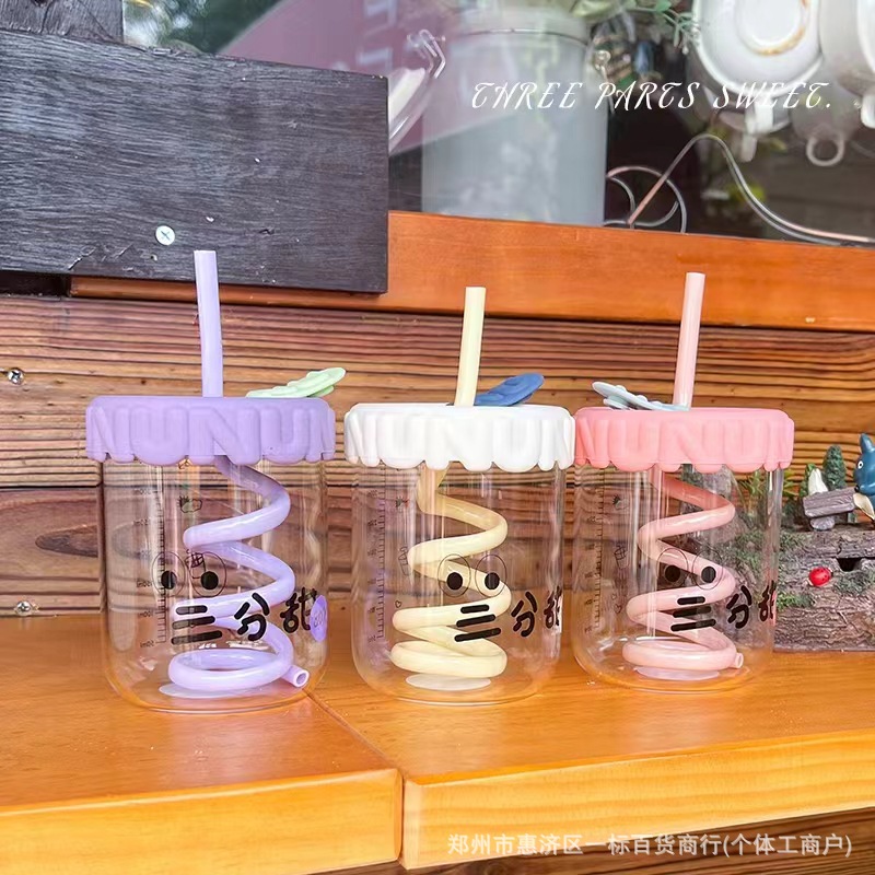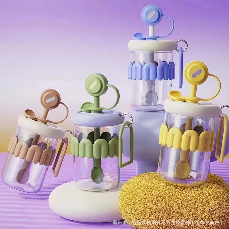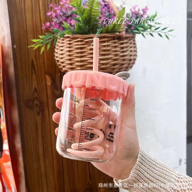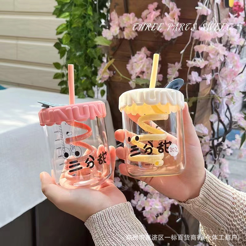 실리콘 리프팅 링 수프 스푼 컵 4050-F 패션 토끼 귀 유리 물 컵 만화 핸들 스털링 시리즈 유리 컵스토어 가기