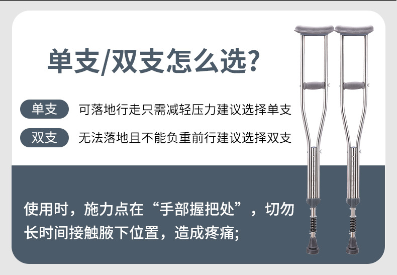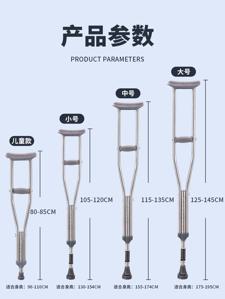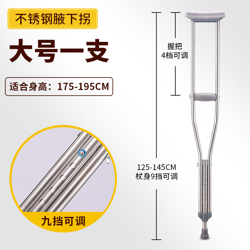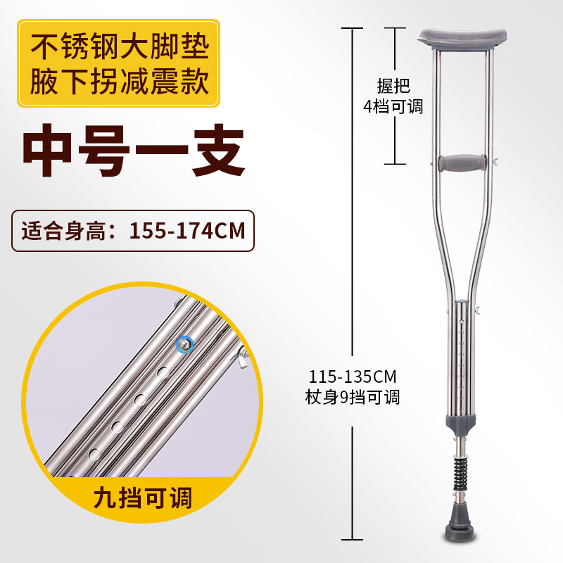 스테인레스 스틸 의료 골절 젊은 사람들의 목발 미끄럼 방지 충격 흡수 성인 조절 높이 겨드랑이 두 번 목발 봄스토어 가기