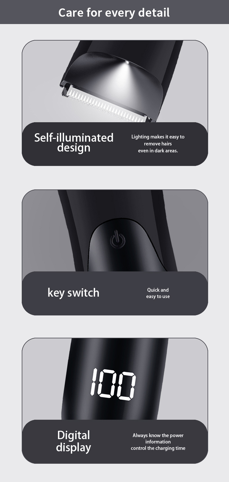 국경 새로운 바디 헤어 트리머 지능형 LCD 디지털 디스플레이 개인 트리머 충전 개인 제모 장치
