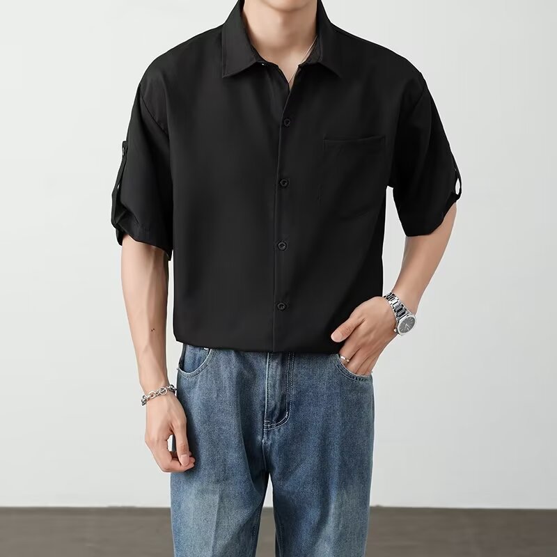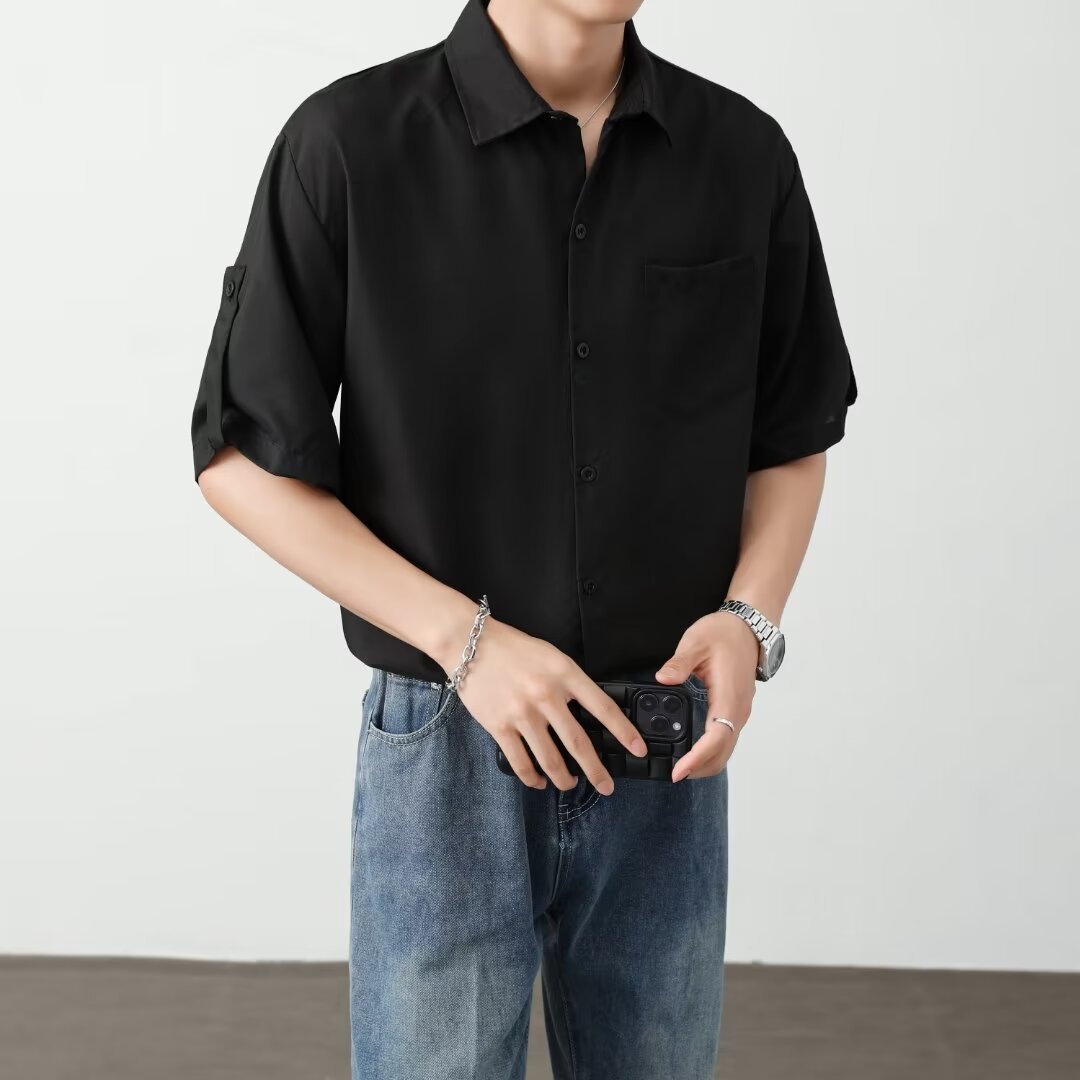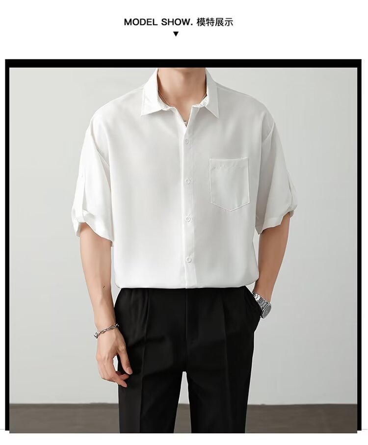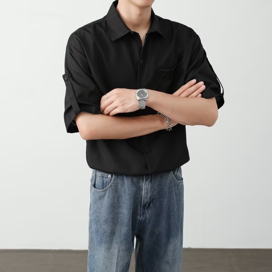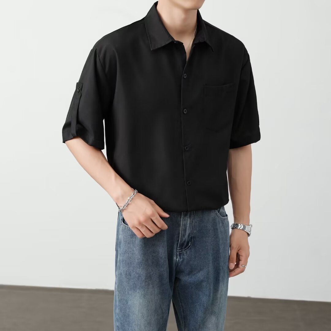 2024 레트로 셔츠 남자 여름 홍콩 스타일 학생 느슨한 틈새 디자인 감각 재미있는 새로운 남성 탑