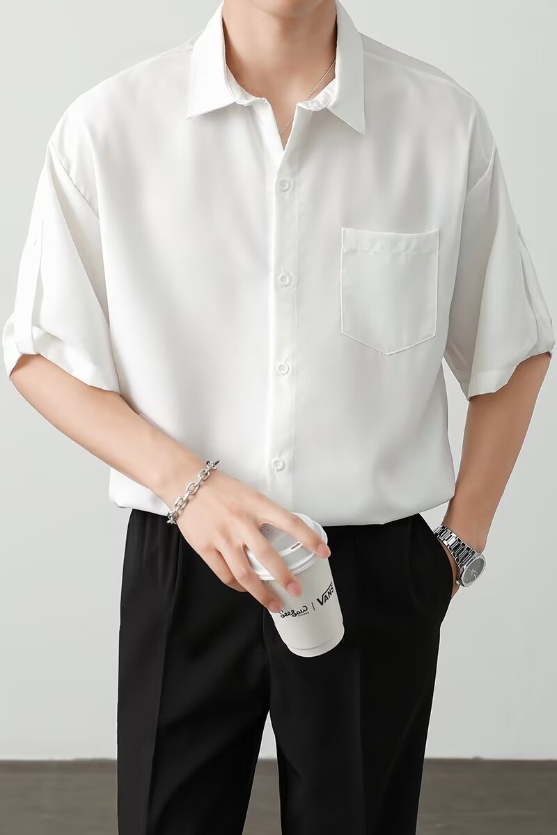 2024 레트로 셔츠 남자 여름 홍콩 스타일 학생 느슨한 틈새 디자인 감각 재미있는 새로운 남성 탑스토어 가기