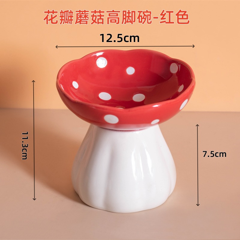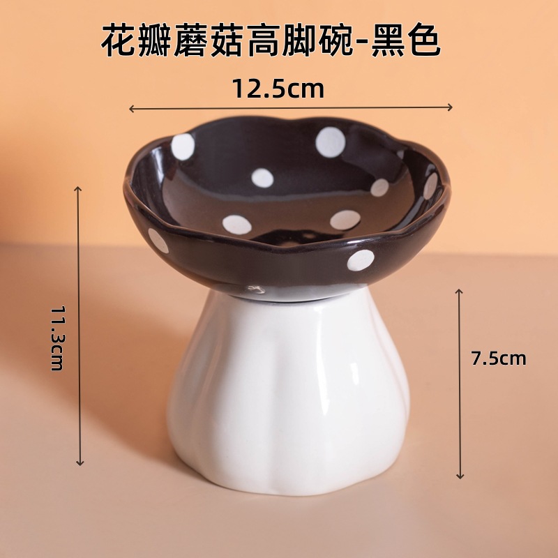 세라믹 고양이 그릇 큰 직경 고양이 음식 분지 세라믹 슬란 트 그릇 안티 티핑 안티 블랙 친 버섯 키 큰 고양이 그릇스토어 가기