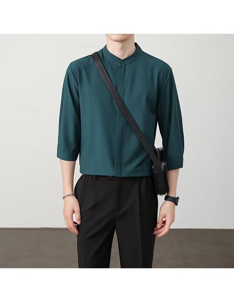 옷깃 반팔 남자 셔츠 남자의 유행 브랜드 여름 티셔츠 한국 스타일 슬림 핏 유행 2024 새로운 올 매치 패션 탑스토어 가기