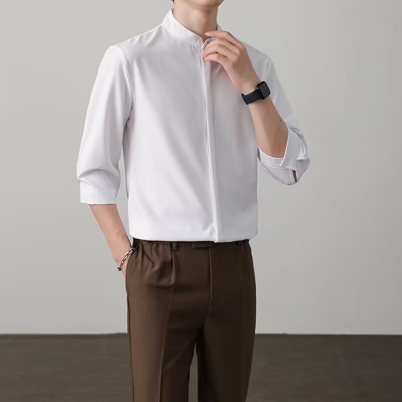 옷깃 반팔 남자 셔츠 남자의 유행 브랜드 여름 티셔츠 한국 스타일 슬림 핏 유행 2024 새로운 올 매치 패션 탑