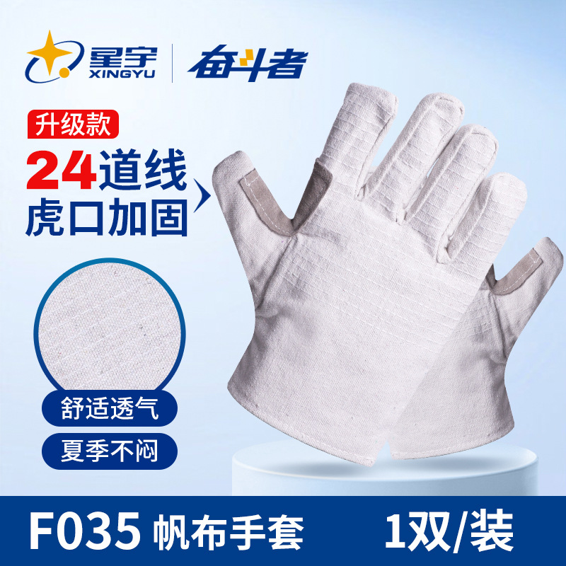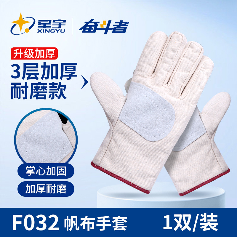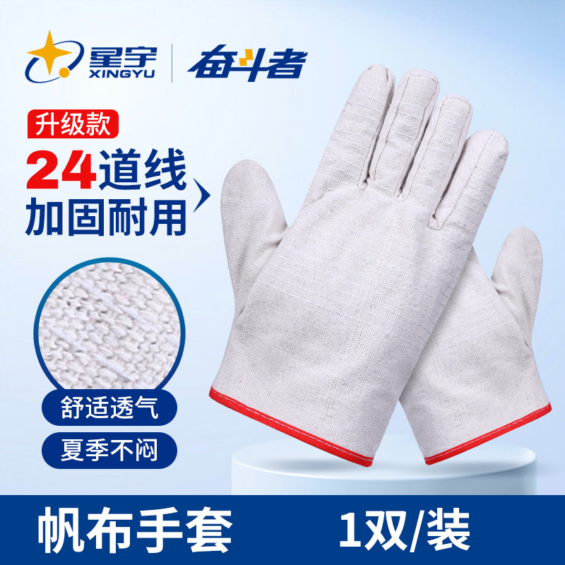 Xingyu 노동 보호 장갑 24 차선 캔버스 장갑 이중층 두꺼운 용접기 기계적 단열 방지 작업 보호스토어 가기