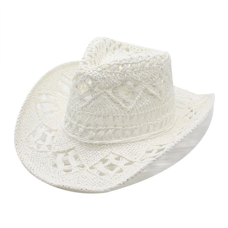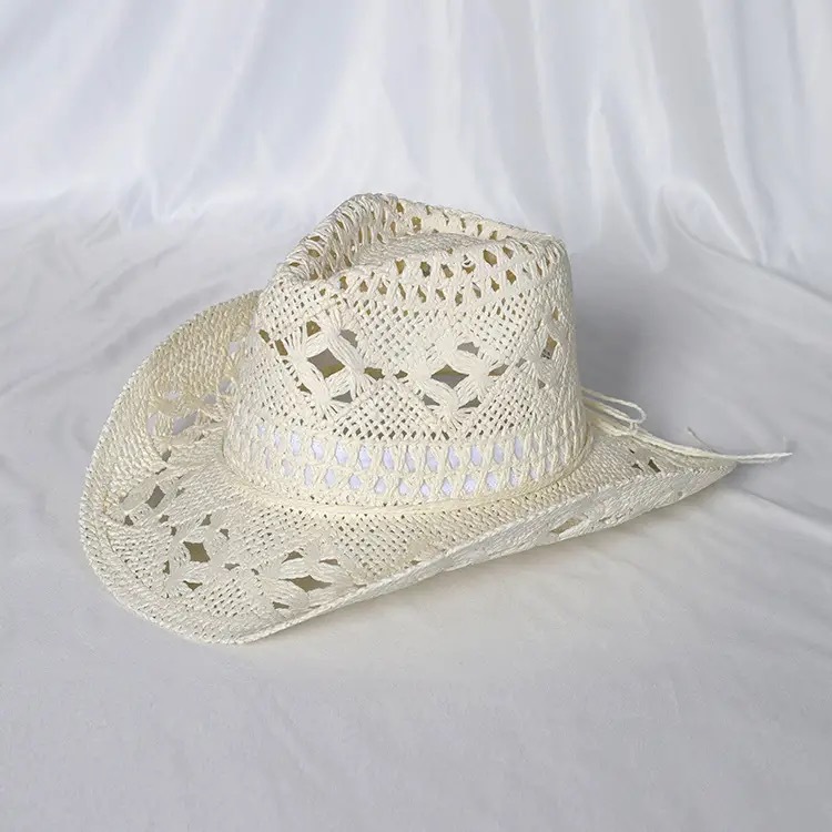 새로운 중공 종이 밀짚 서부 카우보이 모자 유럽과 미국 남성 여성 커플 모자 여름 서부 데님 톱 모자