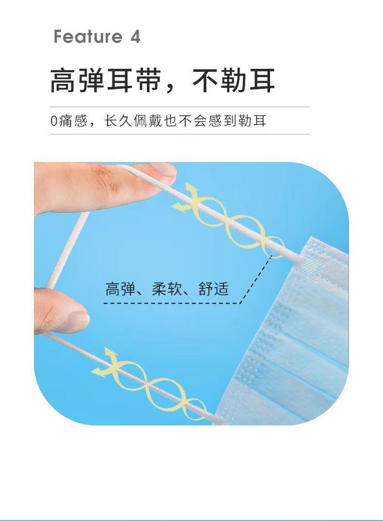 • 50 개의 3 층 보호 높은 탄성 귀 벨트 1 상자