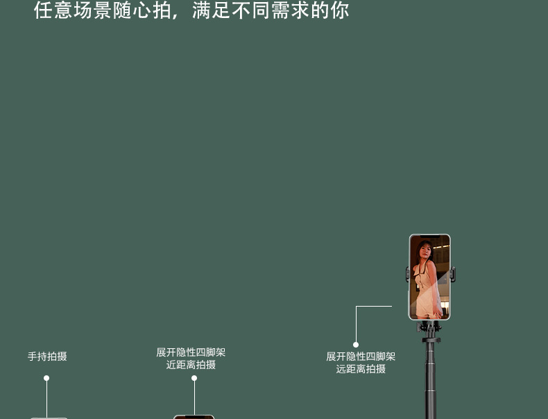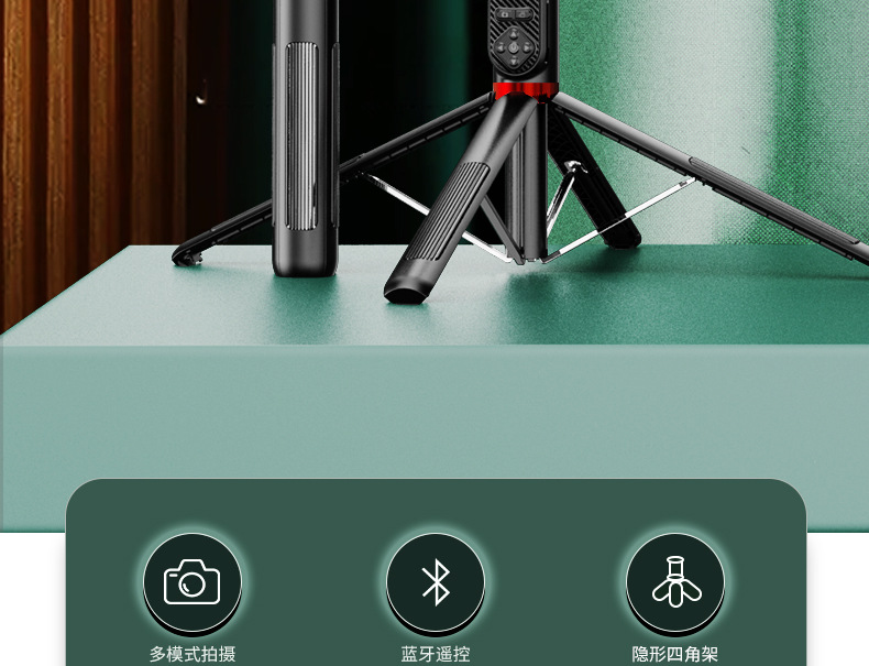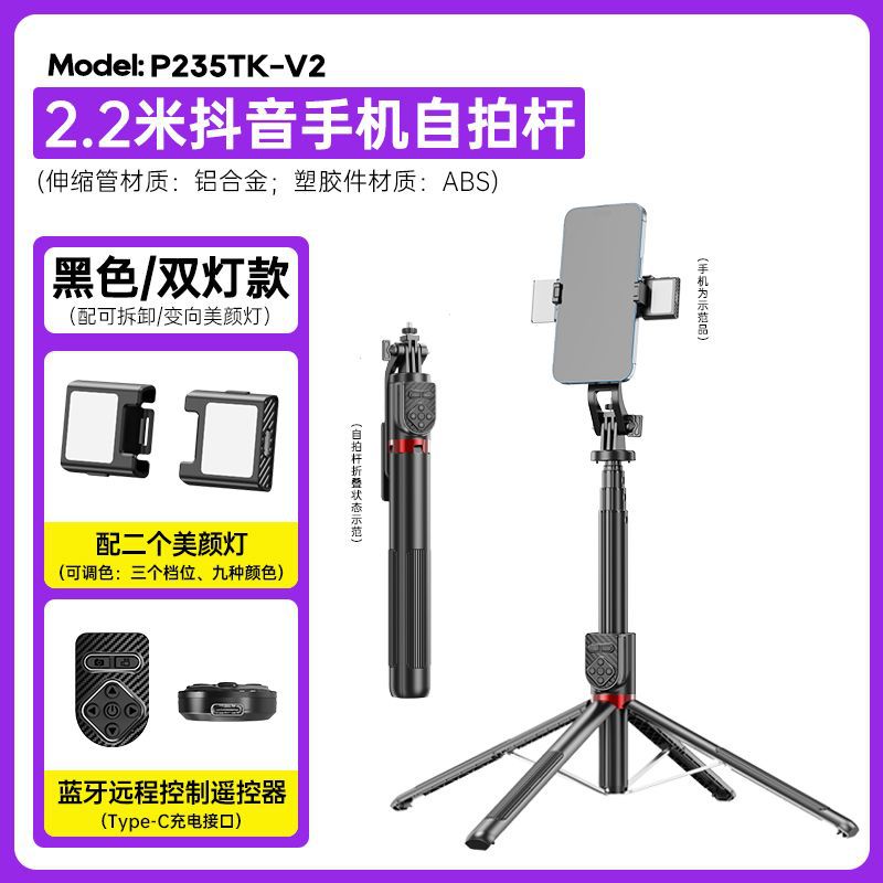P235TK 다기능 휴대폰 셀카봉, 흔들림 방지, 확장 가능, 알루미늄 합금, 틱톡 블루투스 리모컨 셀카봉