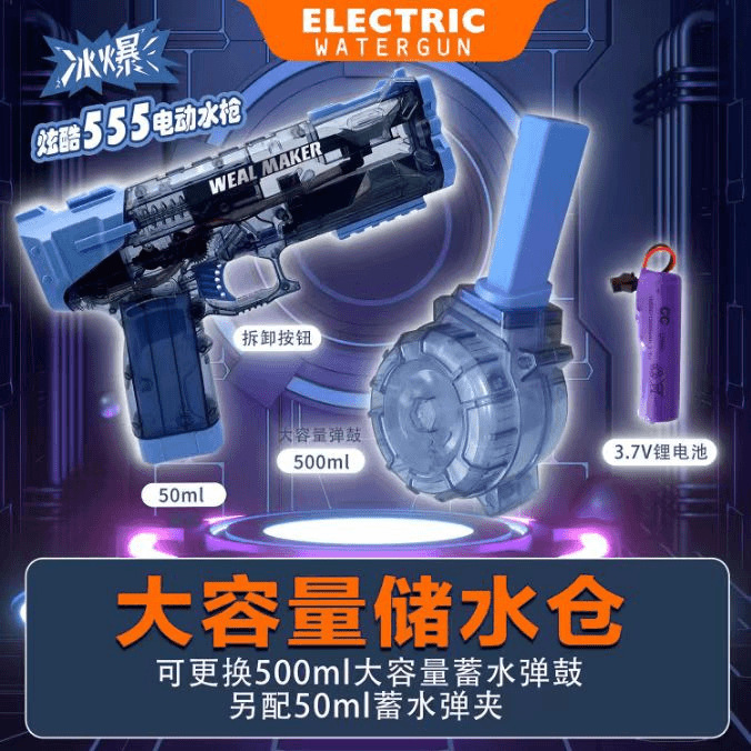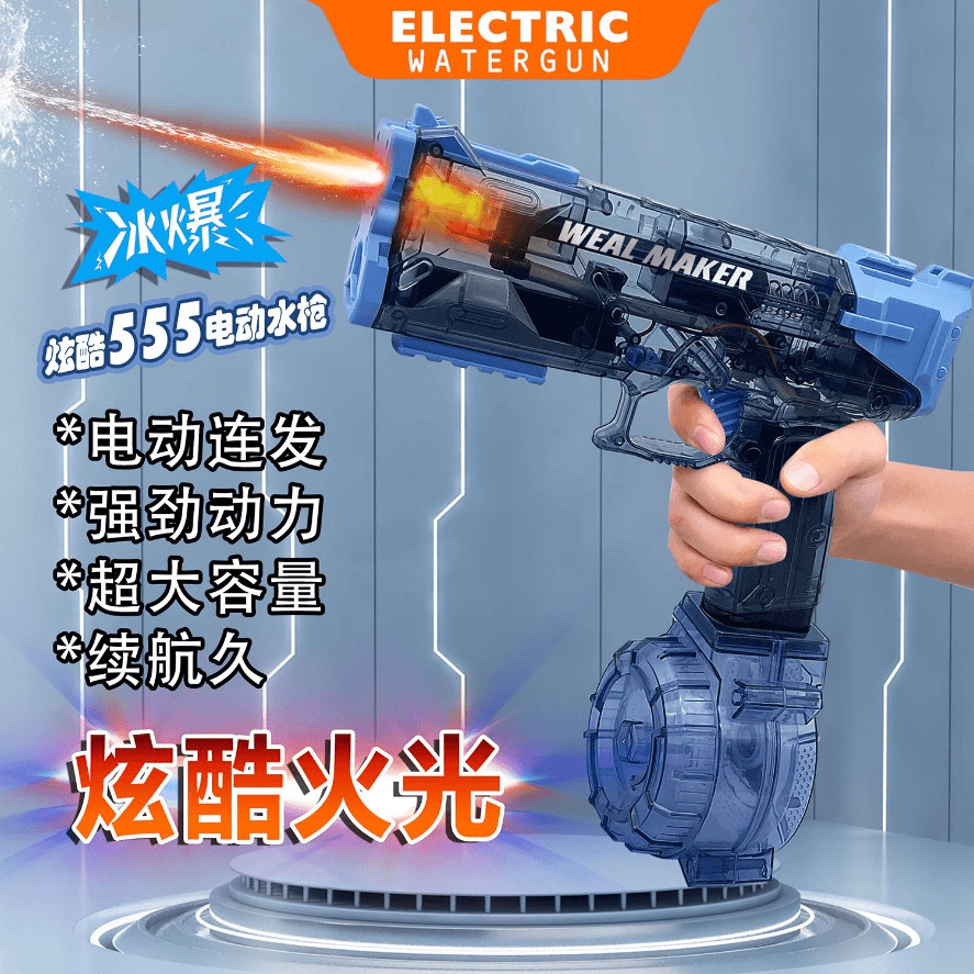 Vulcan 얼음 폭발 전기 물총 펄스 물총 가벼운 스핏불 돼지 물총 물 놀이 장난감과 연계 양동이