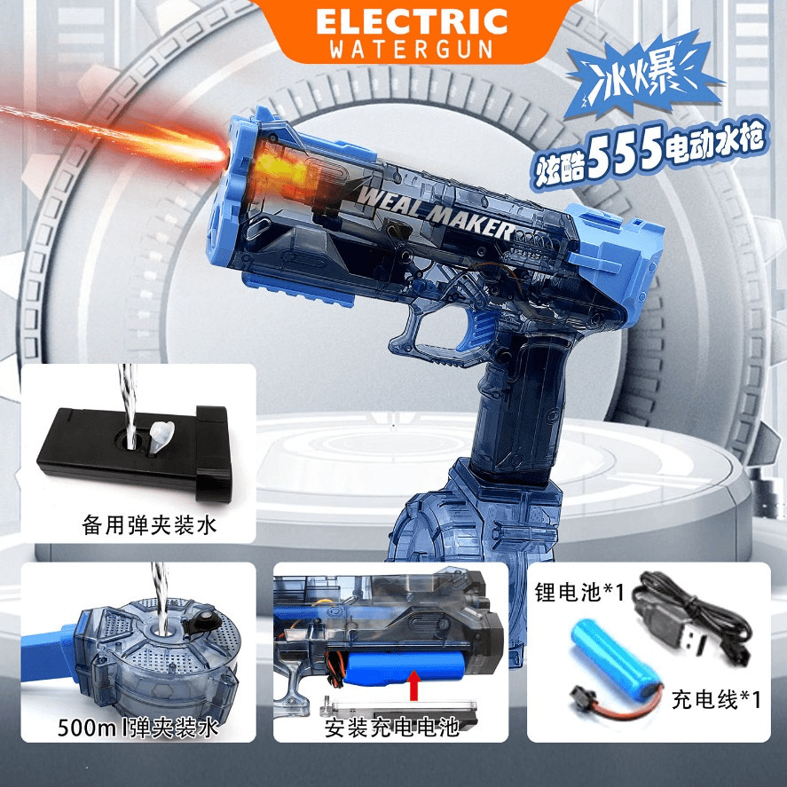 Vulcan 얼음 폭발 전기 물총 펄스 물총 가벼운 스핏불 돼지 물총 물 놀이 장난감과 연계 양동이스토어 가기