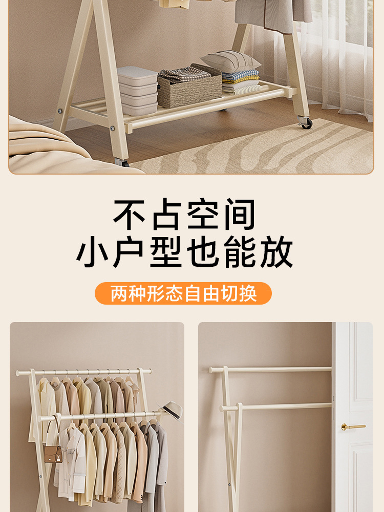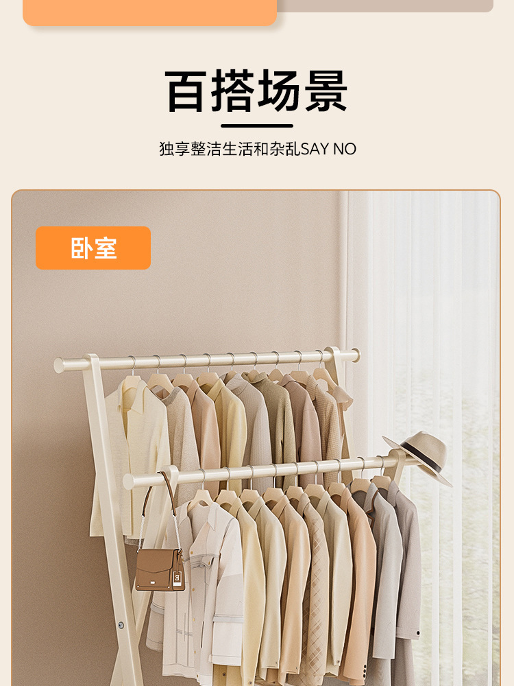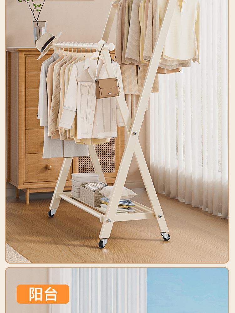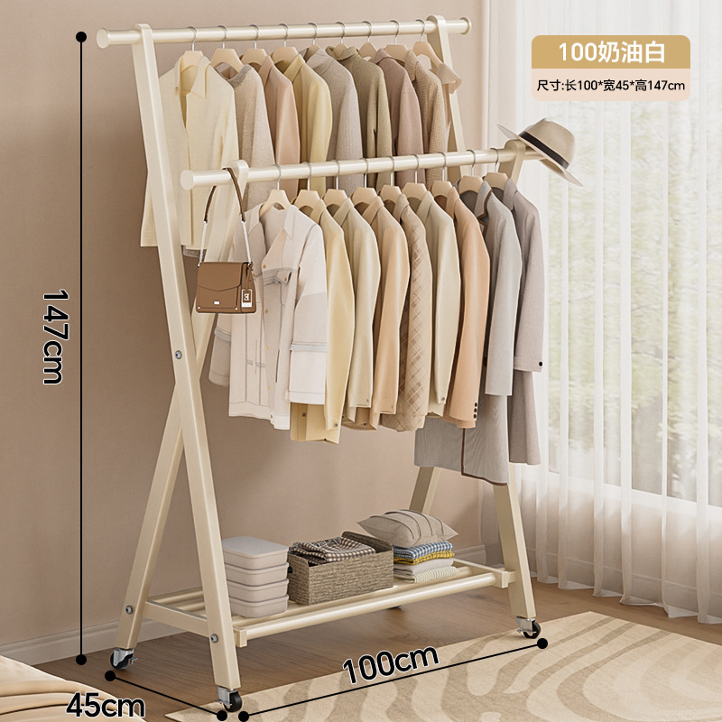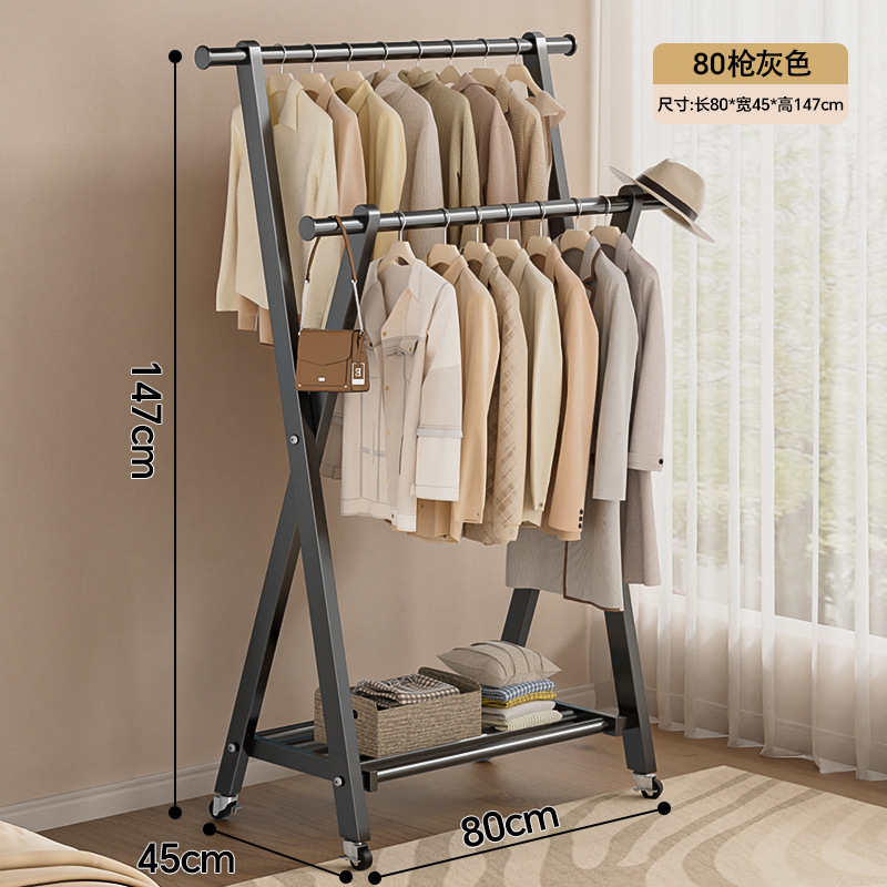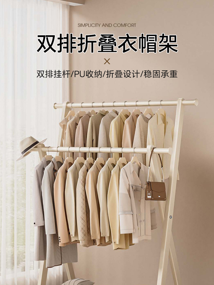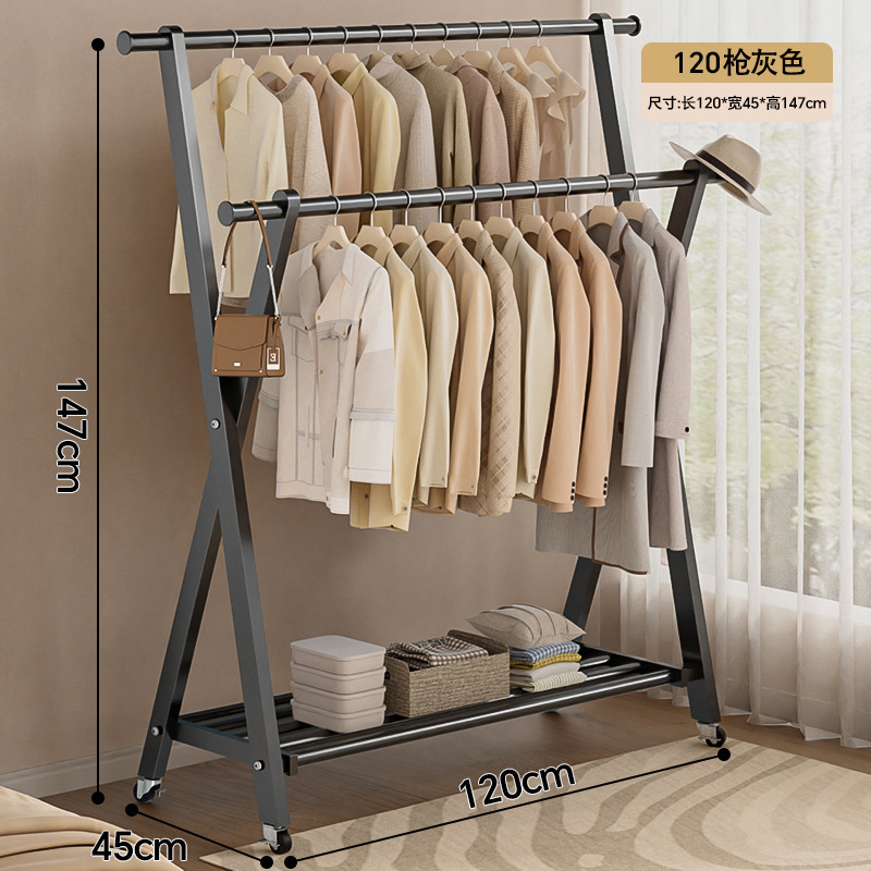 건조 랙 바닥 서 침실 접는 옷걸이 가정용 실내 발코니 옷걸이 막대 이중 극 간단한 코트 랙