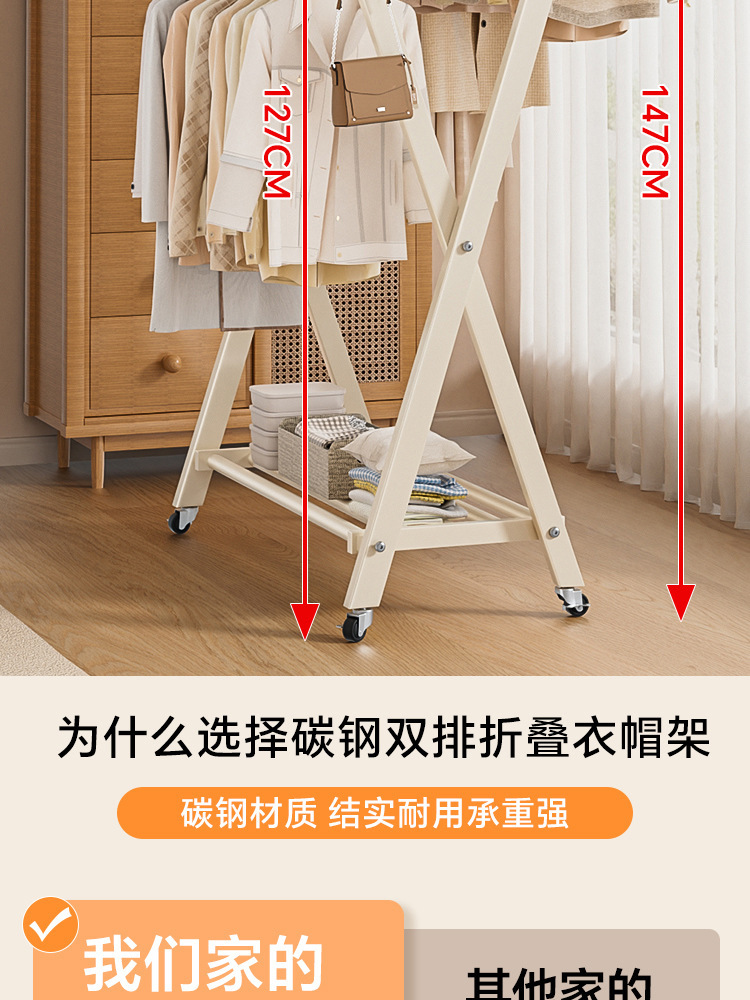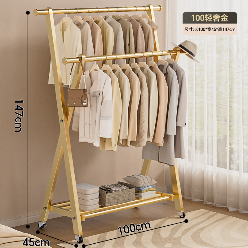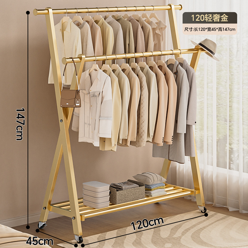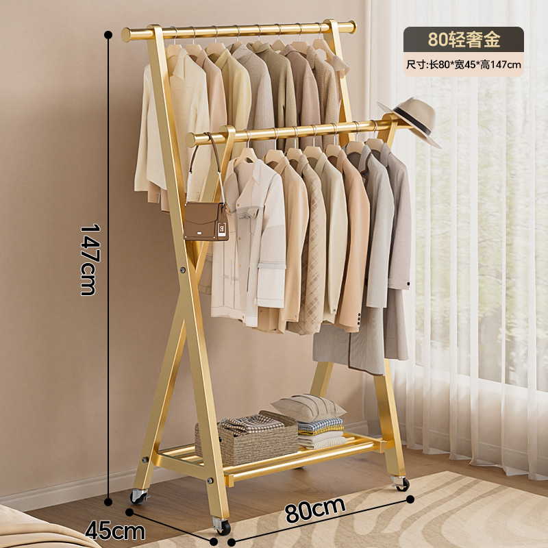 건조 랙 바닥 서 침실 접는 옷걸이 가정용 실내 발코니 옷걸이 막대 이중 극 간단한 코트 랙스토어 가기