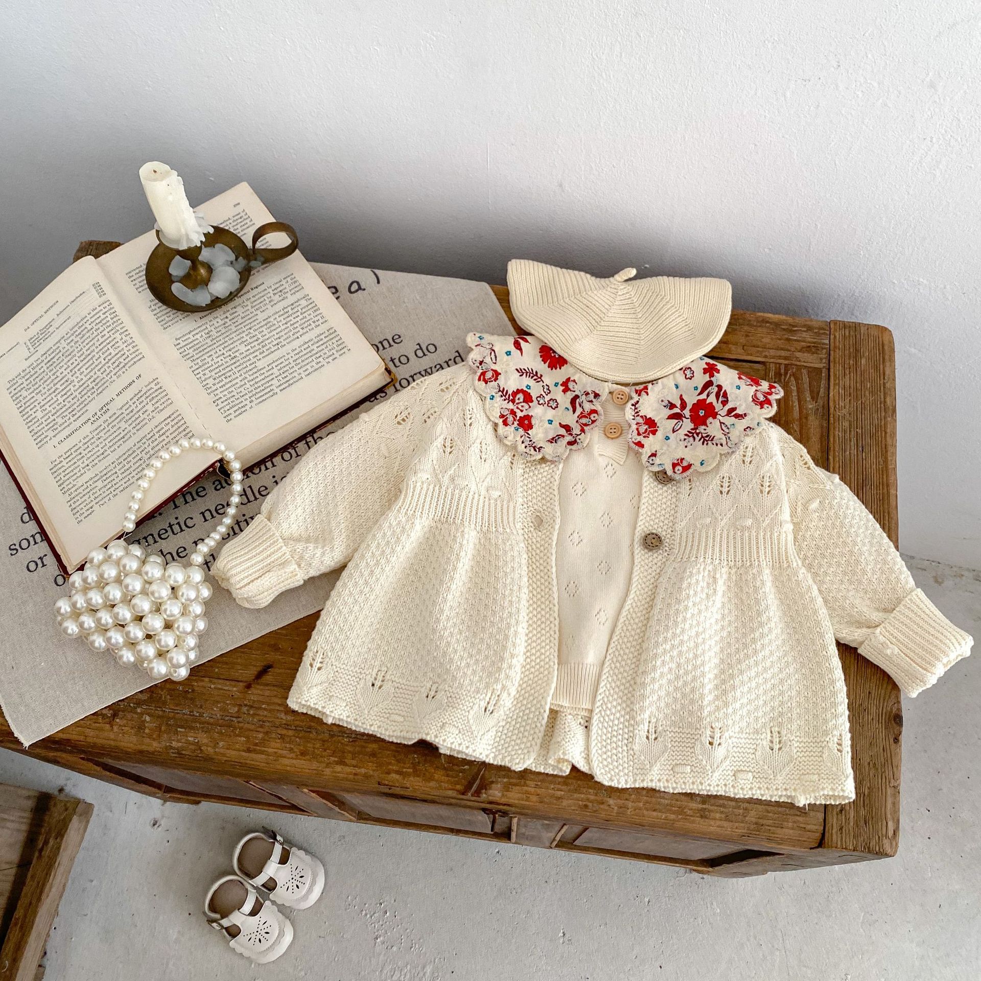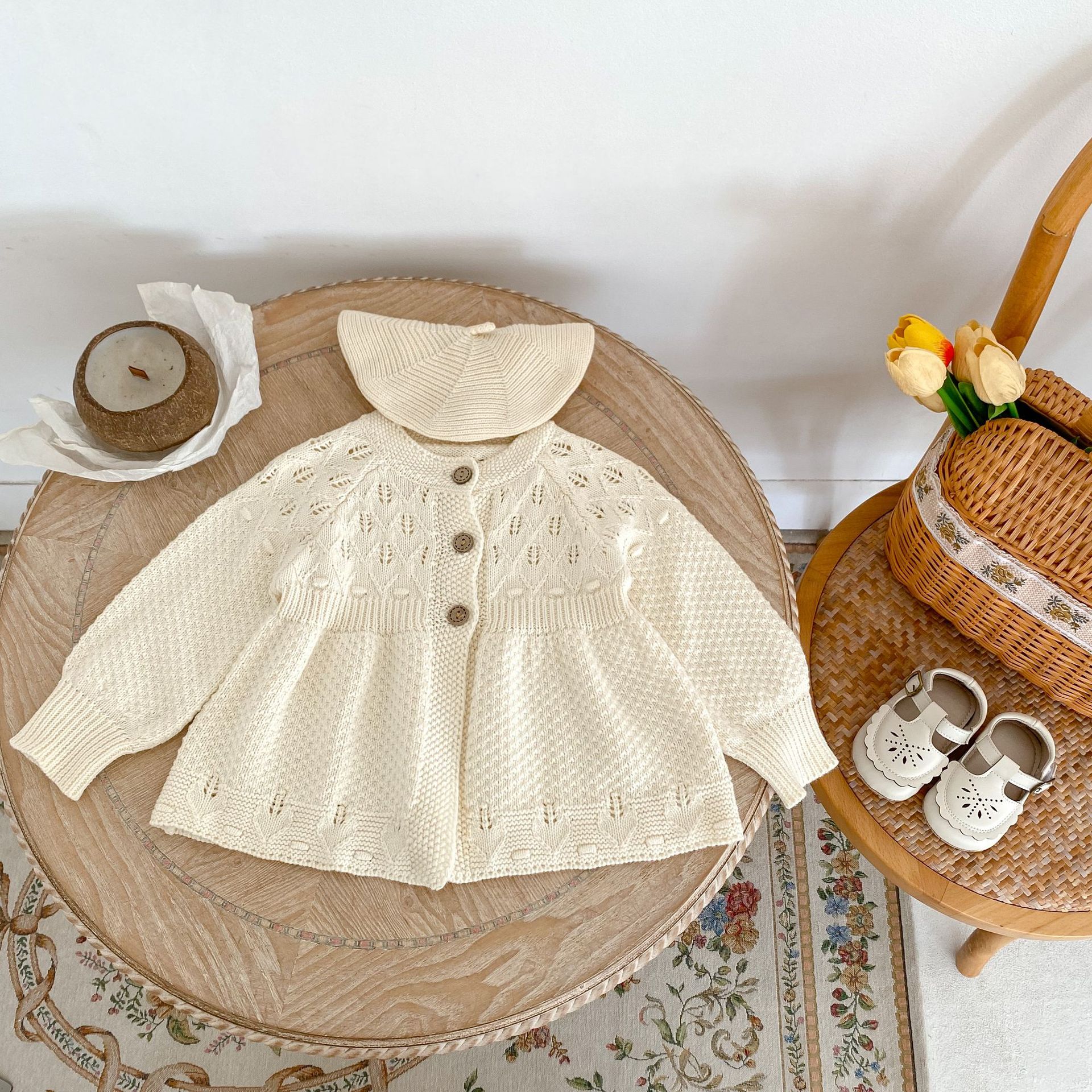 INS 2025 가을 유아 및 아동 스웨터 중공 니트 카디건 A 라인 다용도 코트 아기 소녀 겉옷스토어 가기