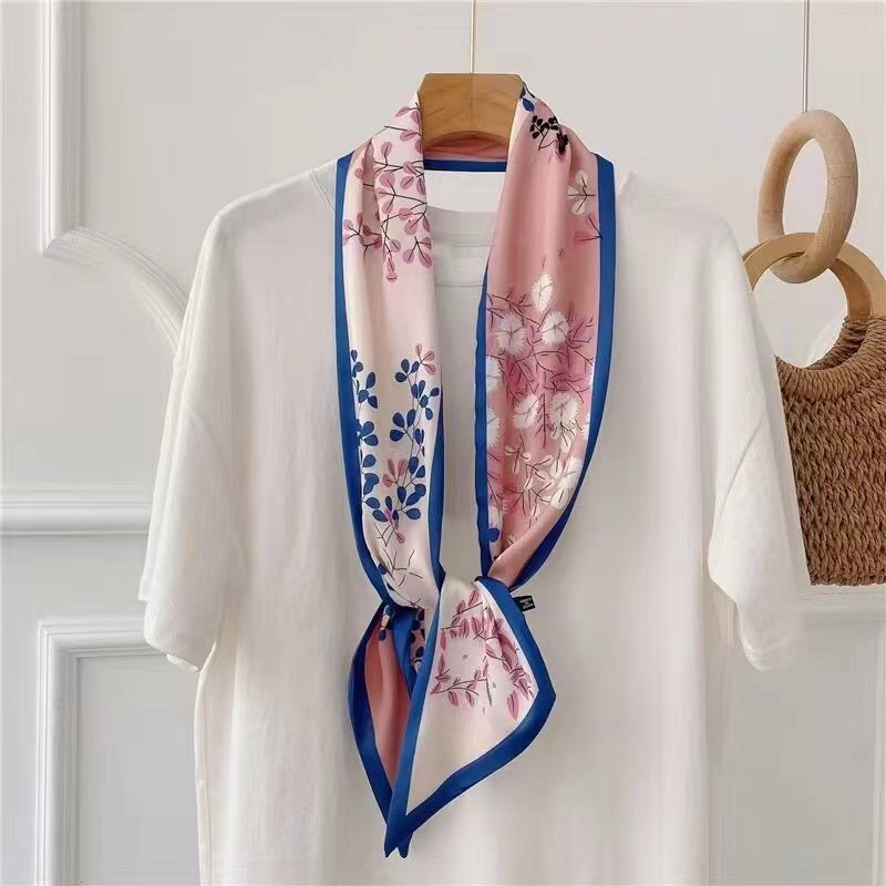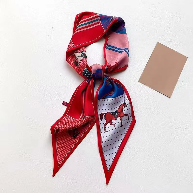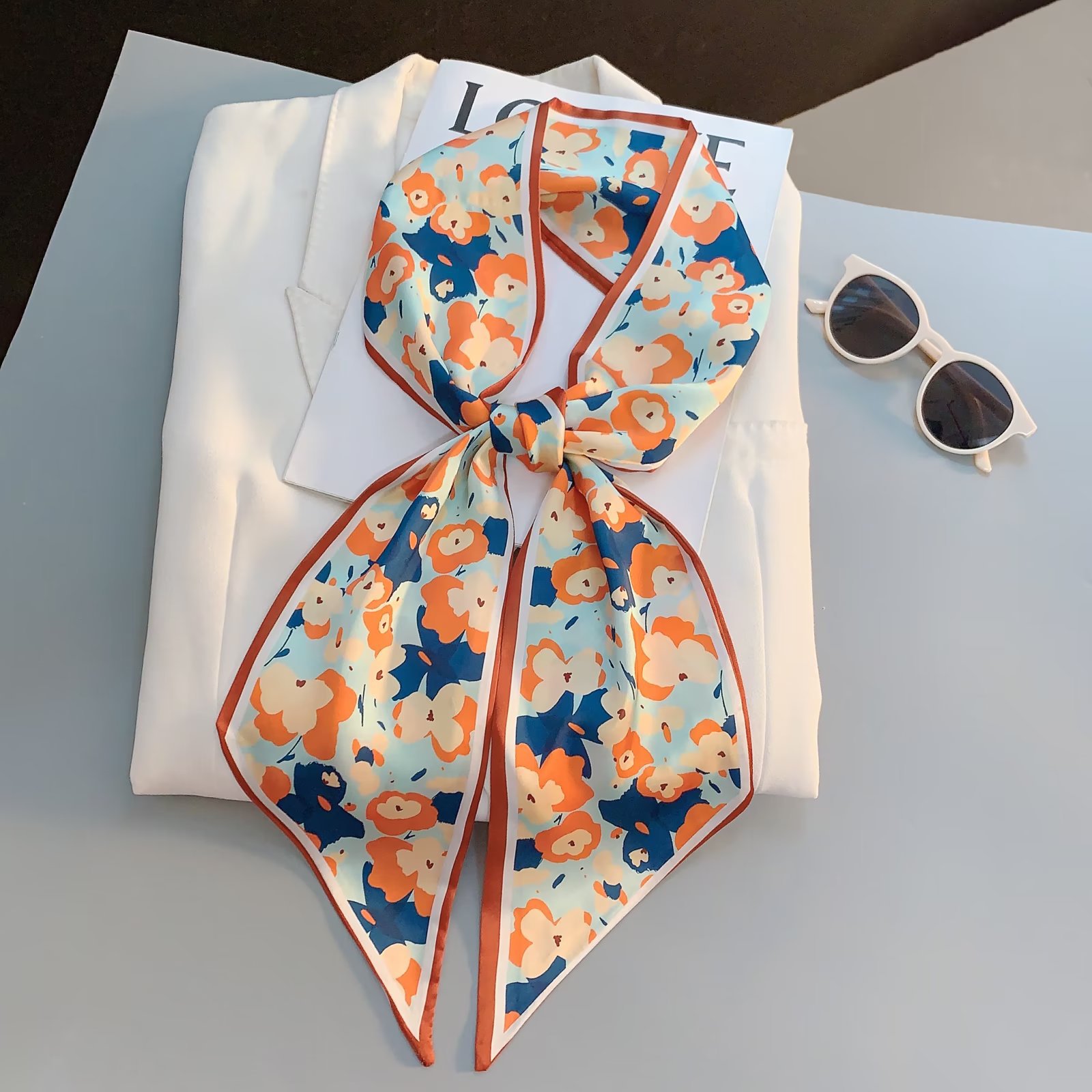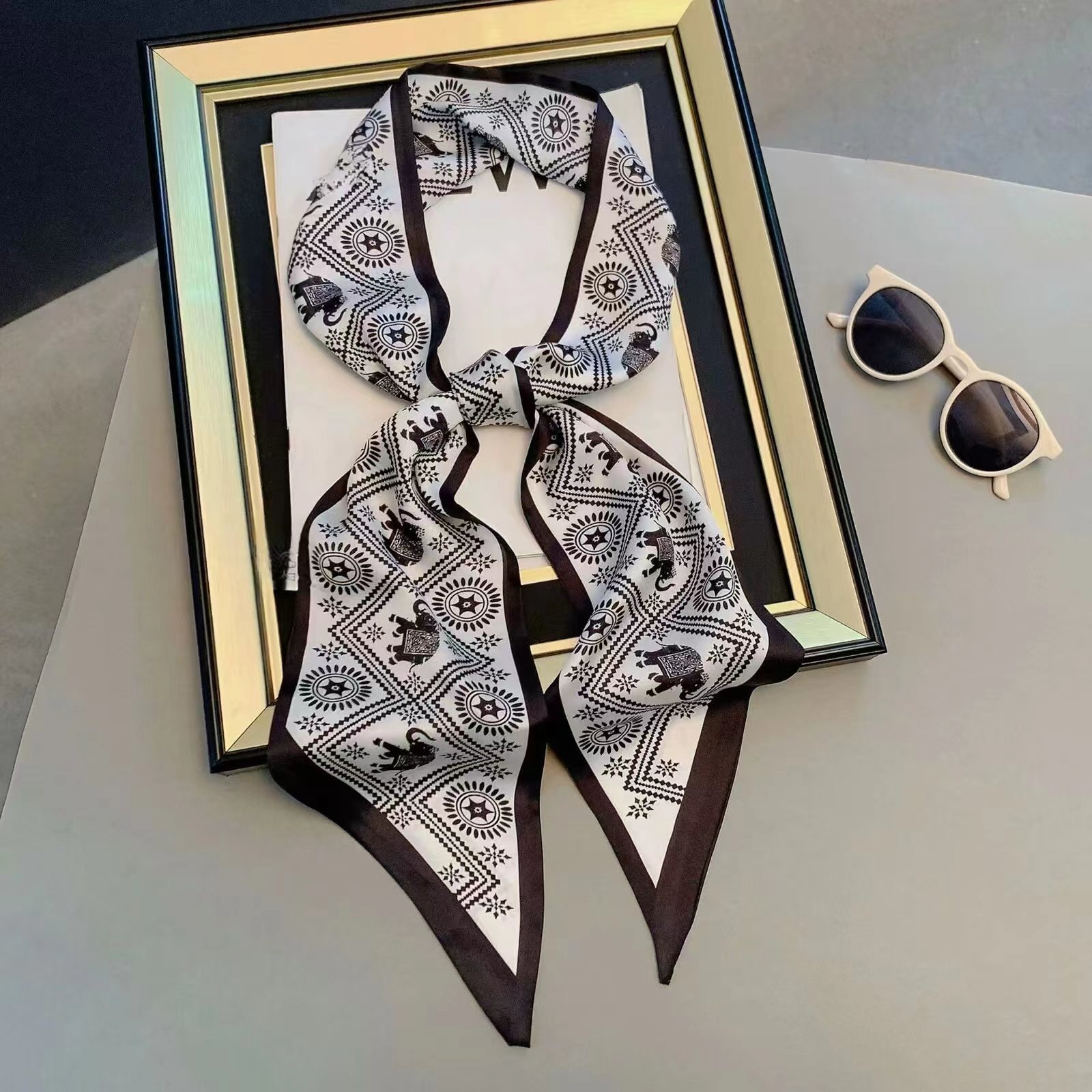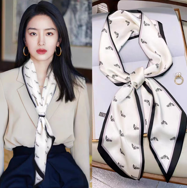 유럽과 미국 스타일의 대인기 대각선 리본 크로스보더 OL 모조 실크 체크 무늬 롱 실크 스카프 공장 도매스토어 가기