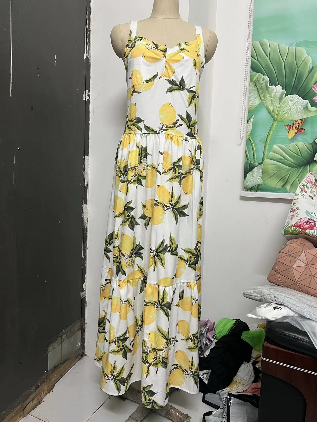 아마존 알리익스프레스 신상 달콤한 끈 프린트 백리스 드레스 롱 드레스 우아한 유럽풍