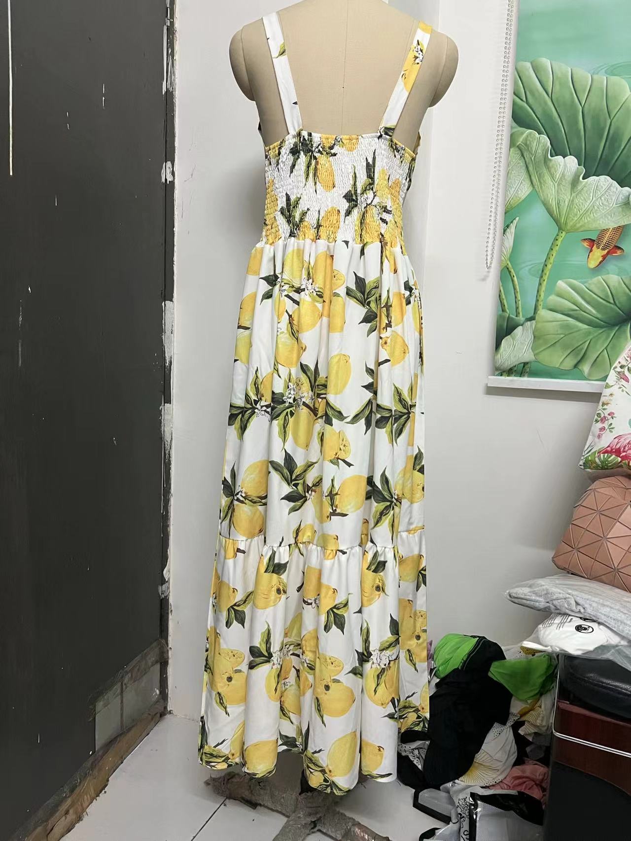 아마존 알리익스프레스 신상 달콤한 끈 프린트 백리스 드레스 롱 드레스 우아한 유럽풍스토어 가기