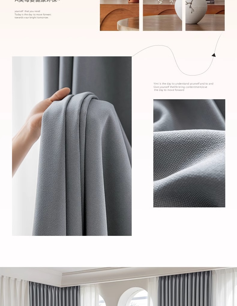 리넨 커튼 전체 음영 두꺼운 침실 발코니 태양 보호 및 단열 커튼 2024 두꺼운 골동품 단순 현대스토어 가기