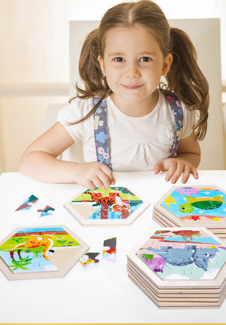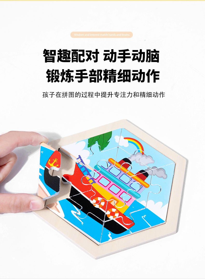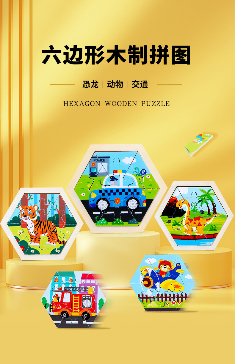 국경을 넘는 어린이 교육용 블록 퍼즐 나무 육각형 교통 동물 공룡 창의적이고 다양한 남아 여아 장난감스토어 가기