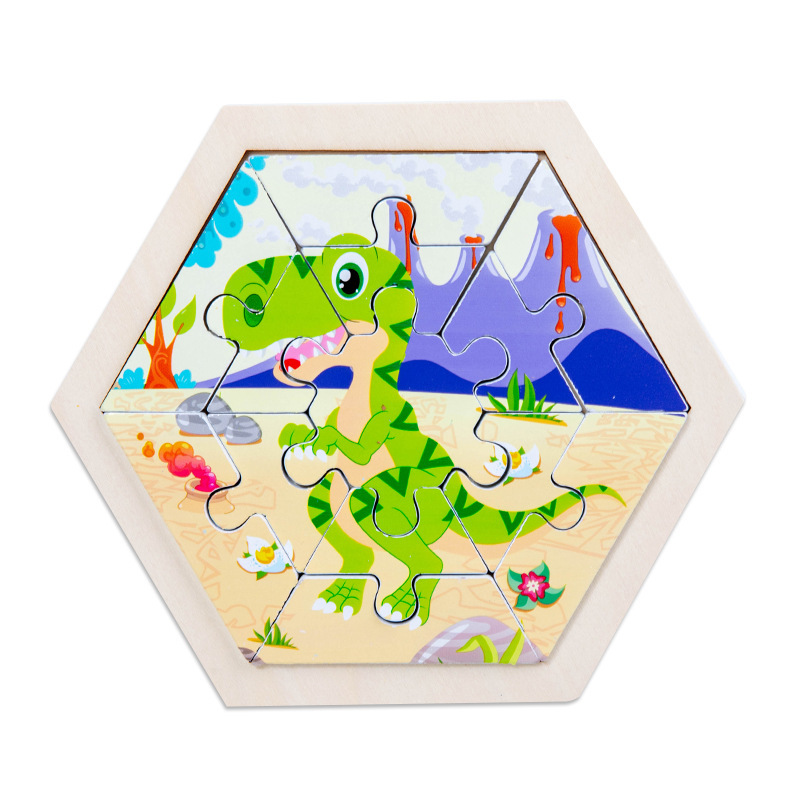 국경을 넘는 어린이 교육용 블록 퍼즐 나무 육각형 교통 동물 공룡 창의적이고 다양한 남아 여아 장난감