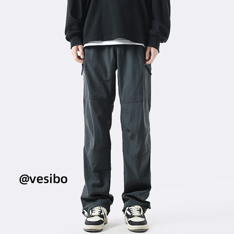 아이스 실크 크록 바지 남자 여름 얇은 미국식 느슨한 캐주얼 낙하산 병 긴 바지 남자 스포츠 기능 러쉬 바지스토어 가기