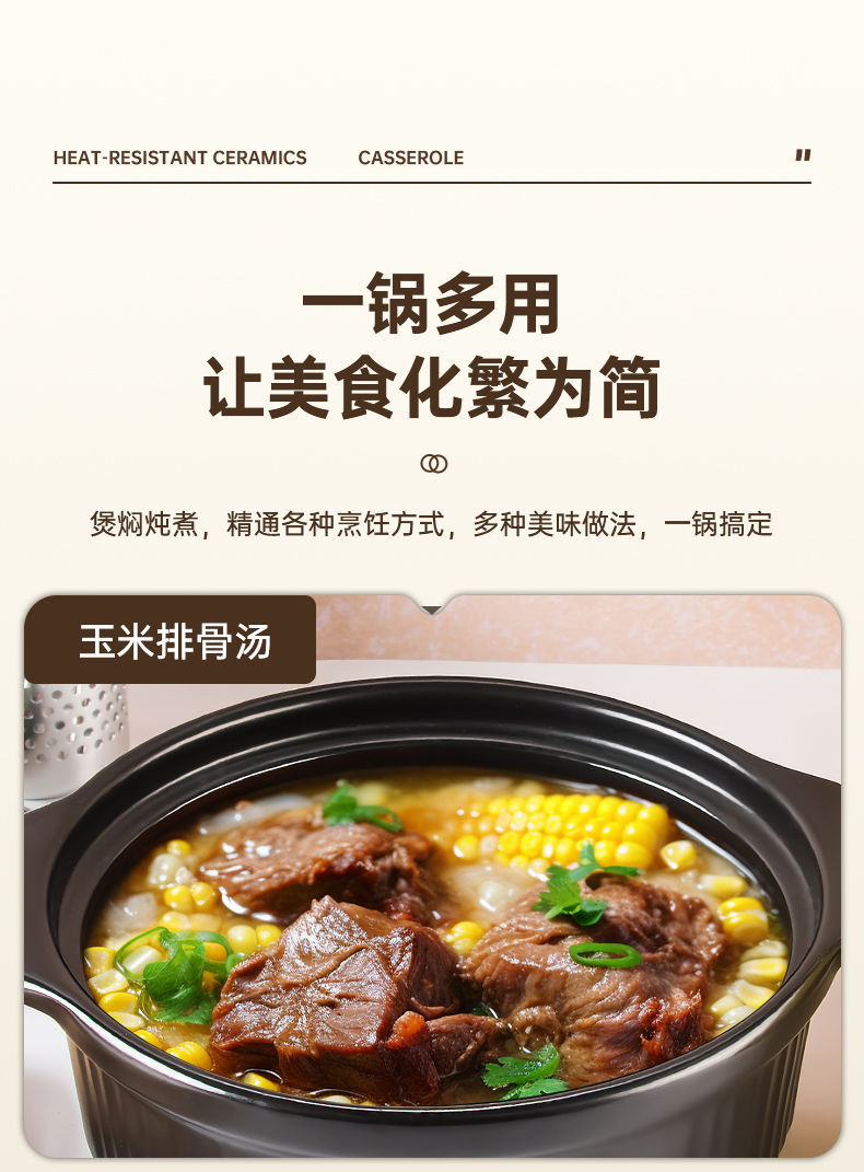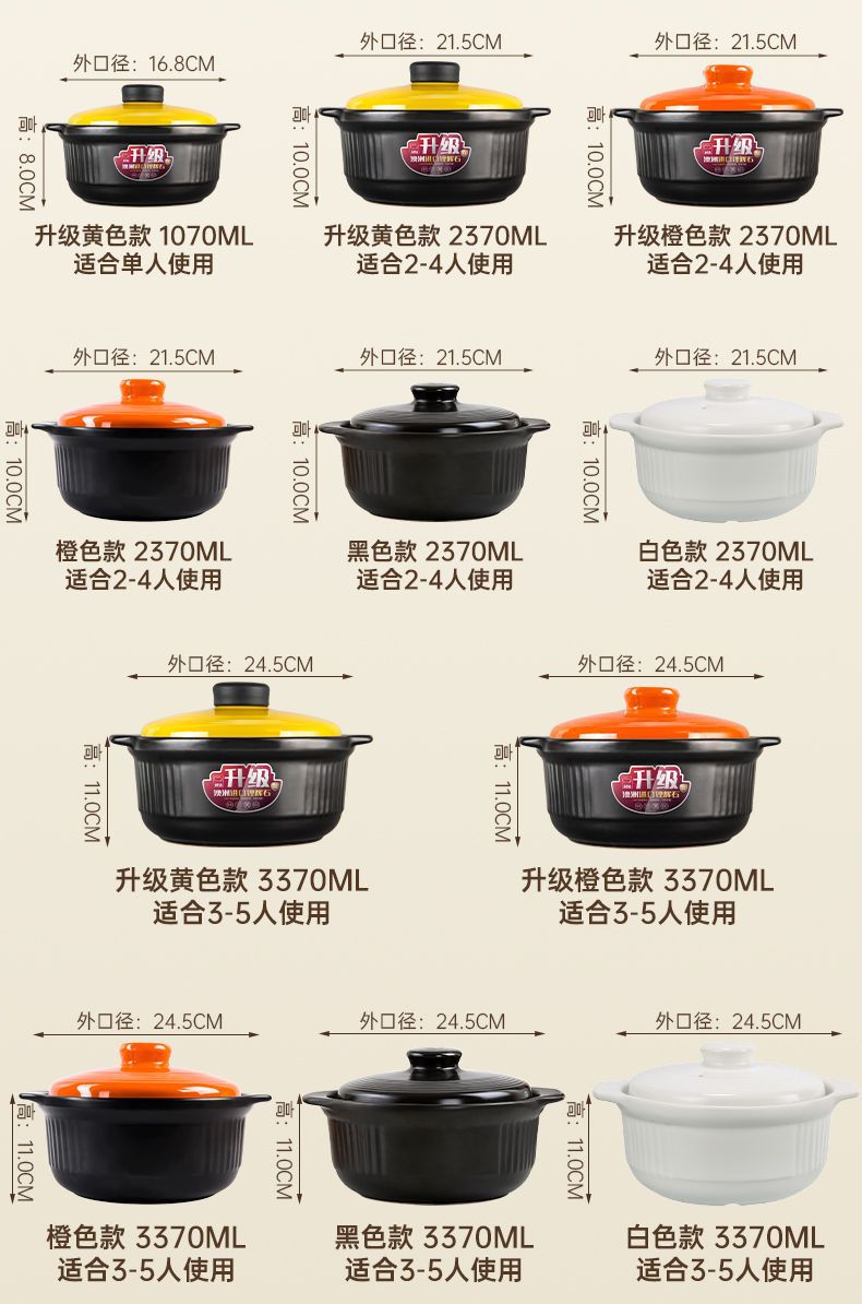 강수 캐서롤 업그레이드 된 두꺼운 대용량 수프 냄비 스튜 냄비 오픈 파이어 직접 연소 고온 저항 건조 연소 비 크래킹 세라믹 냄비스토어 가기