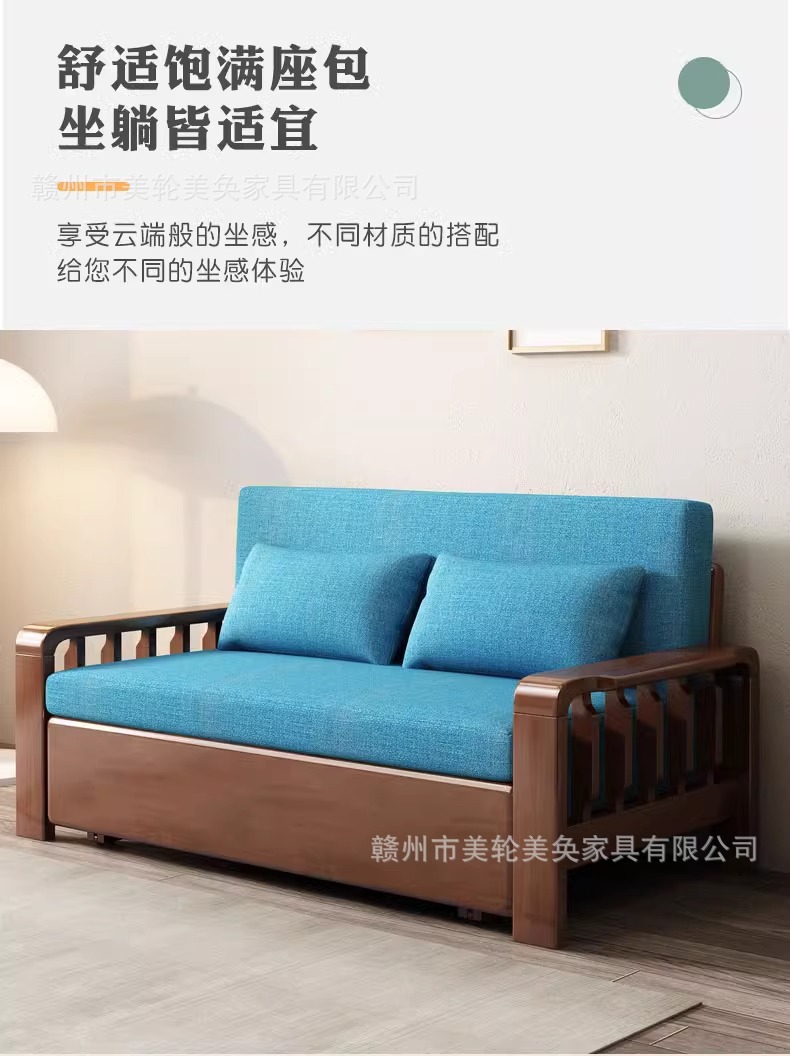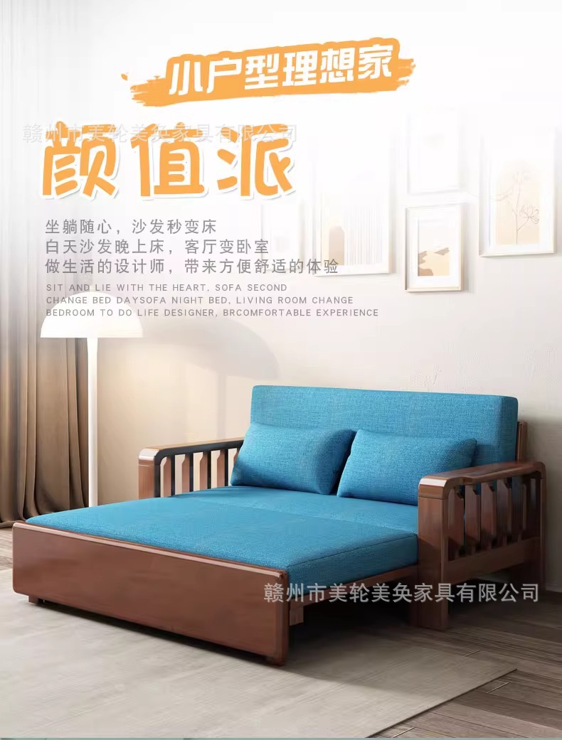 다기능 솔리드 우드 소파 침대 접히는 듀얼 사용 점심 침대 간단한 작은 아파트 거실 망원경 소파 인터넷 축하 소파
