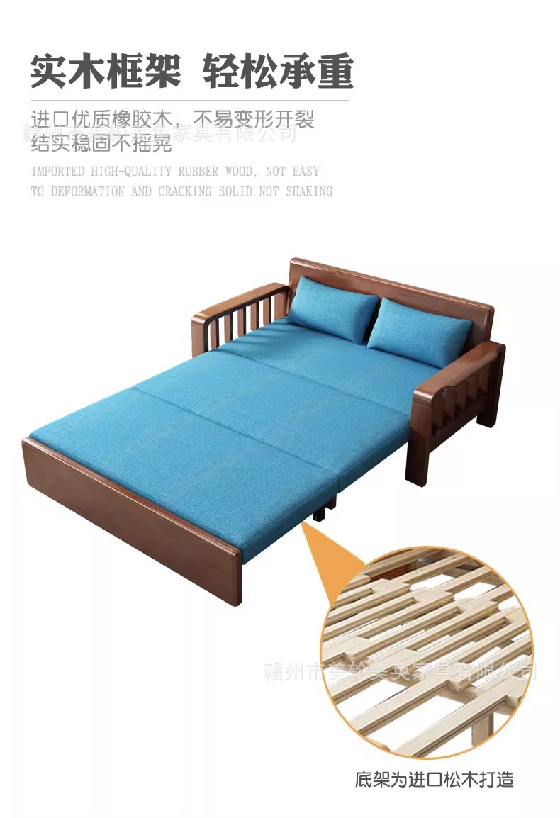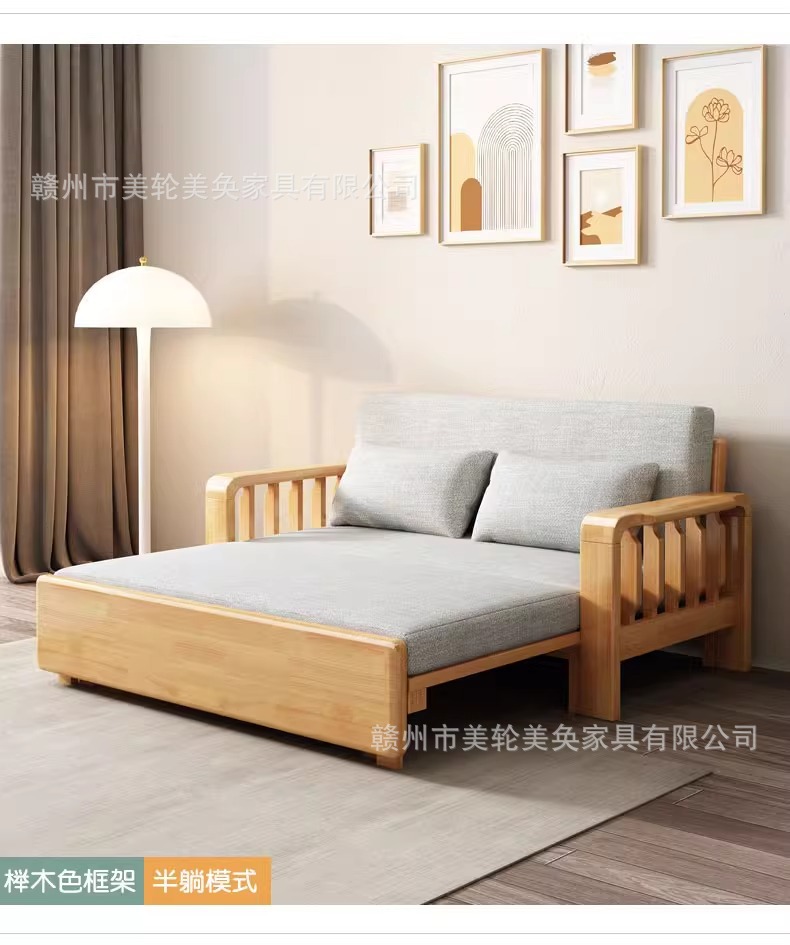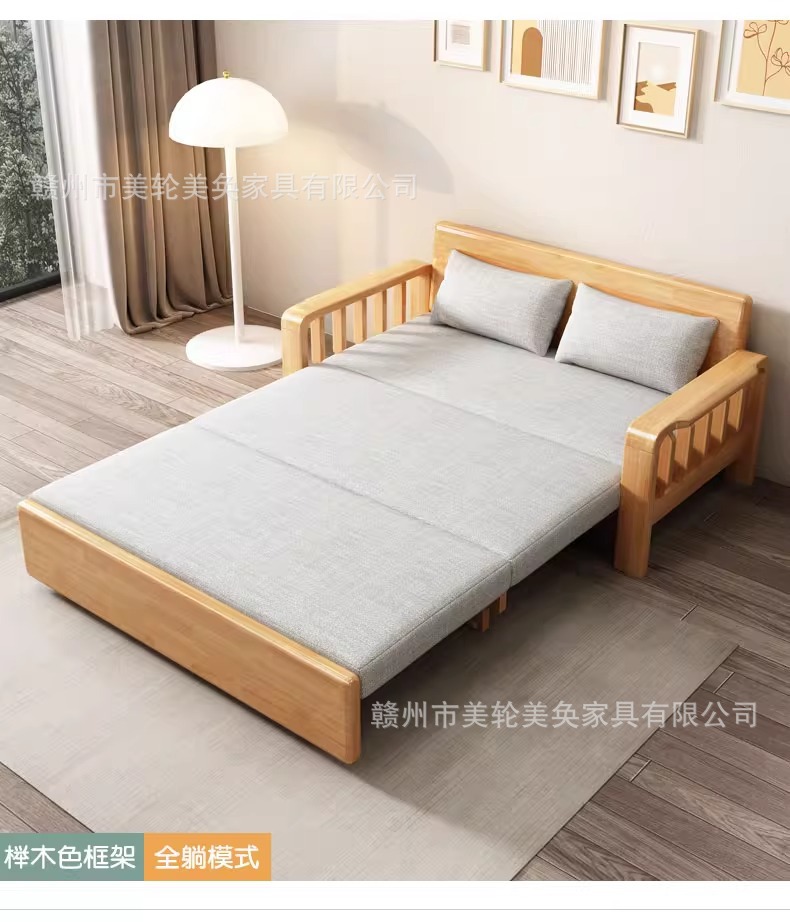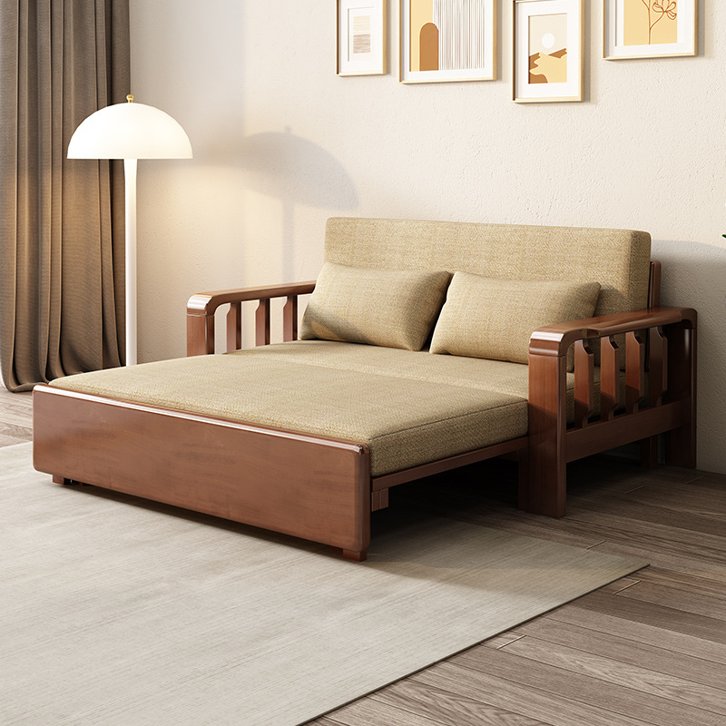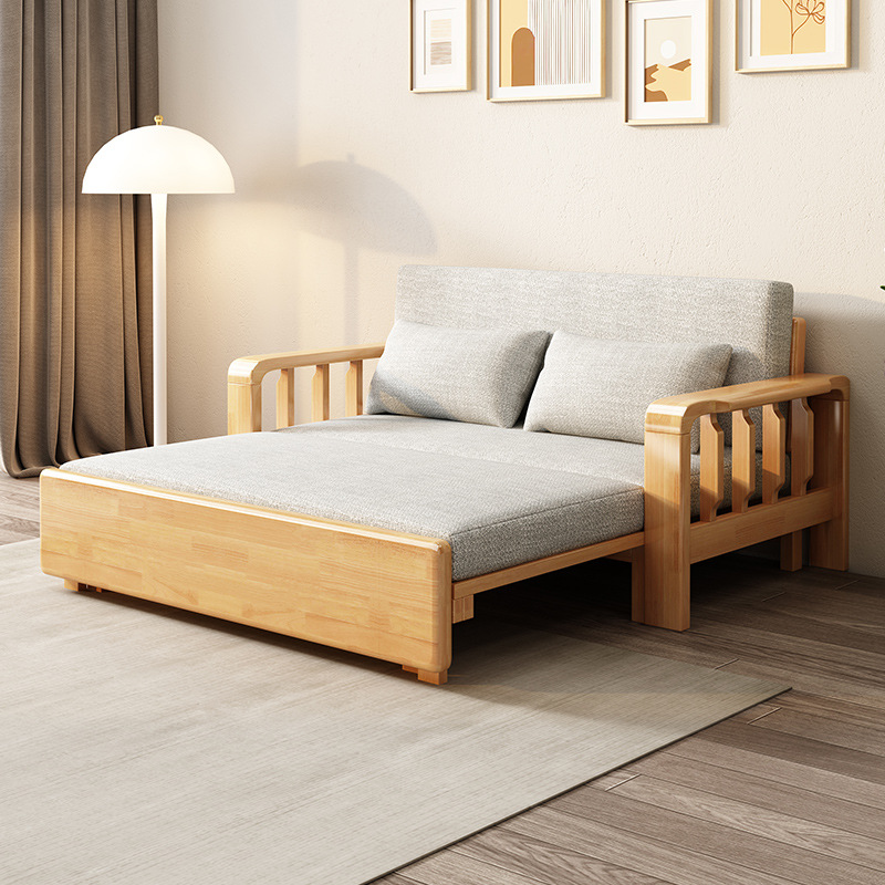 다기능 솔리드 우드 소파 침대 접히는 듀얼 사용 점심 침대 간단한 작은 아파트 거실 망원경 소파 인터넷 축하 소파스토어 가기