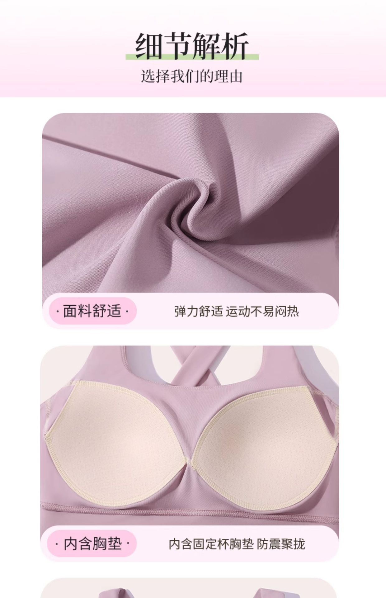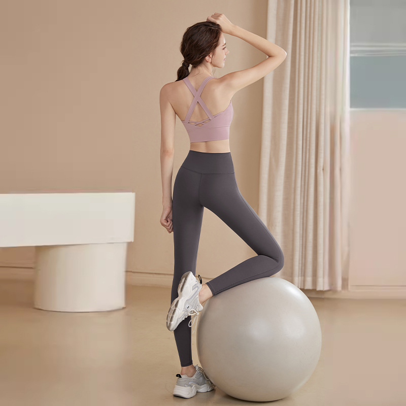 • 보라색 브라[고정 컵 가슴 패드] + 회색 바지