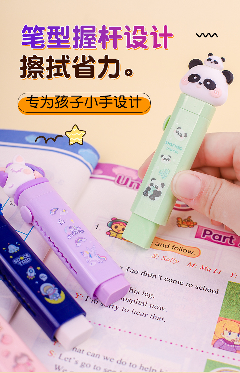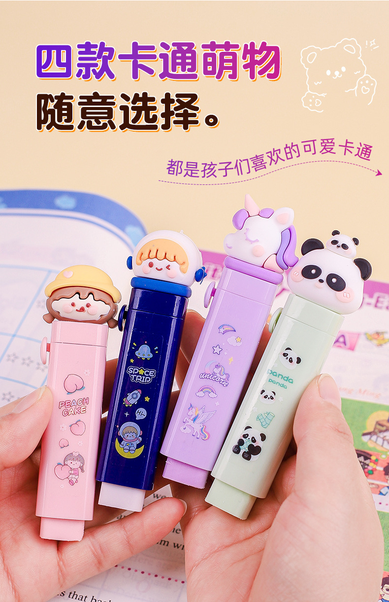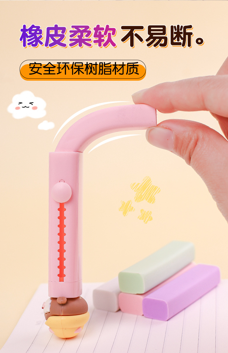 귀여운 만화 푸시 풀 고무 어린이 학교 용품 지우기 쉬운 스크랩 지우개 교체 가능한 연필 지우개