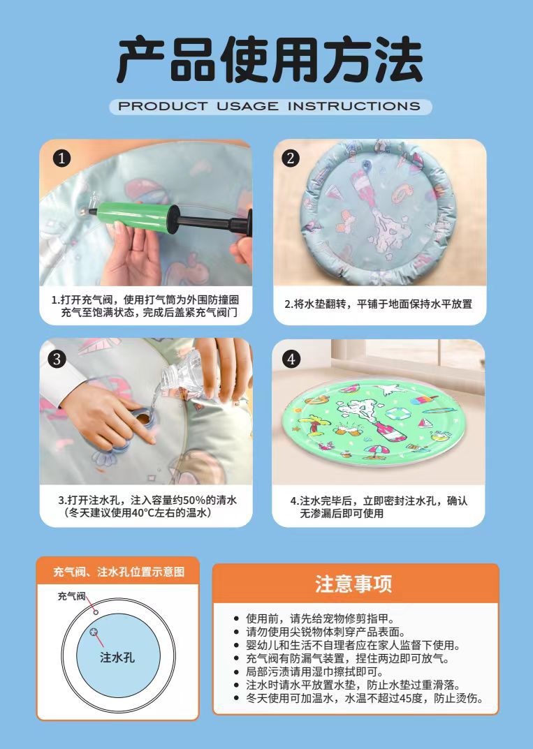 국경 팽창 식 팻 워터 매트 여름 고양이 개 워터 매트리스 수채화 애완 동물 아이스 매트 여름 애완 동물 장난감스토어 가기