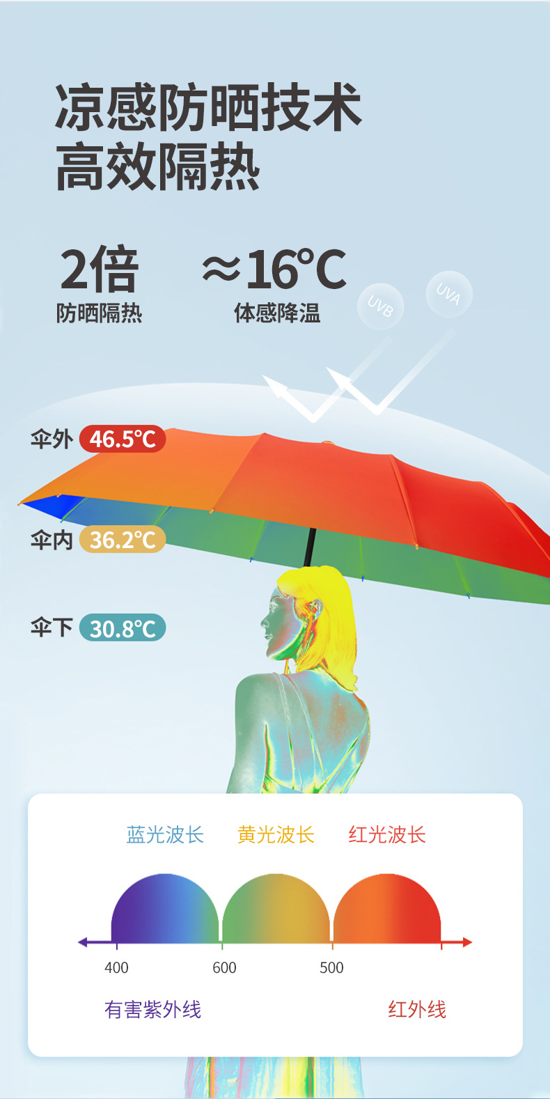 • 헤이즈 블루 [업그레이드 핸들 12-뼈 더블 드래곤 뼈 섹션 안전 반등 비 및 햇빛 이중 사용]]