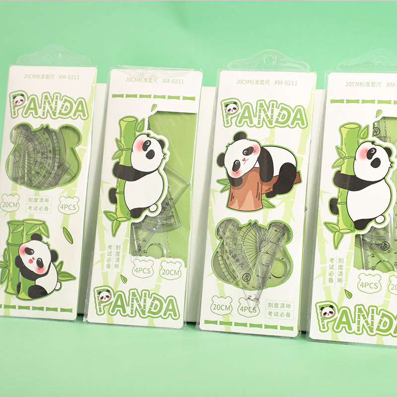 만화 팬더 네 조각 통치자 삼각형 통치자 세트 초등학교 문구 선물 상품 도매스토어 가기